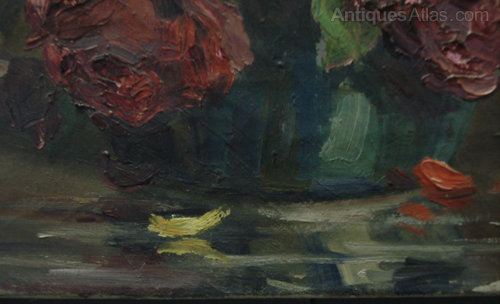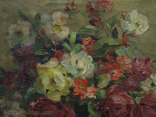 Ref 5106 - Old French oil on canvas. Still life of flowers. Signed A Gillet. Circa 1900.