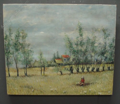 French Oil on Canvas Landscape Painting