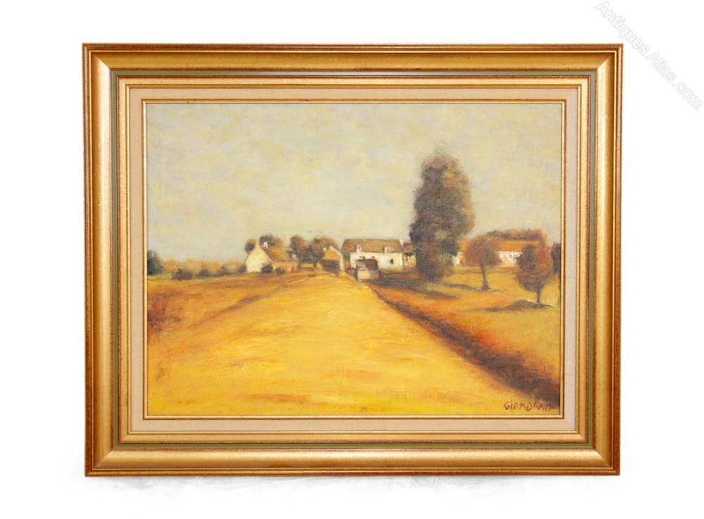an Oil painting of a French Farmhouse signed by Giordana looks like a date inscribed to back 11-11-88 in original frame and in very good condition