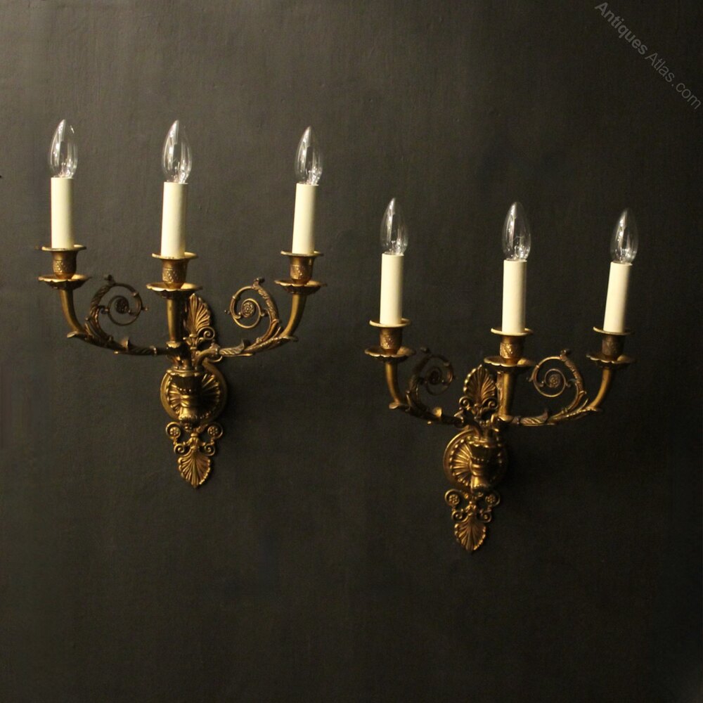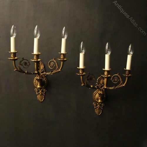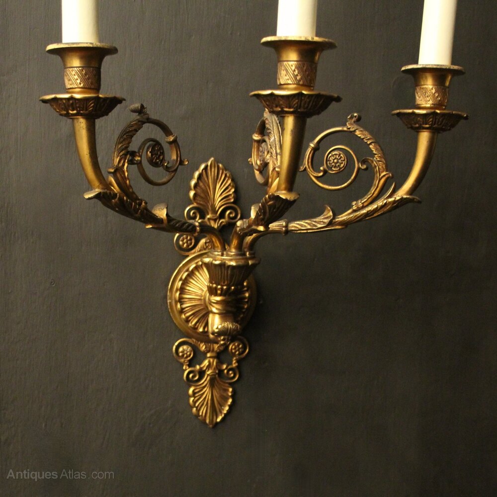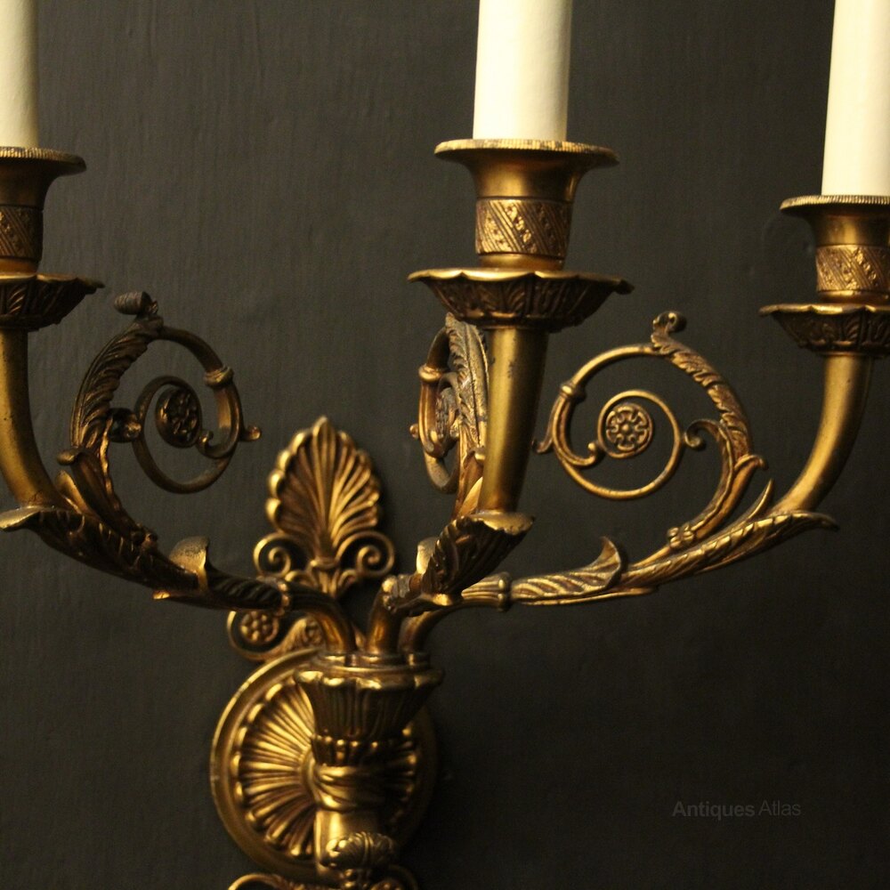 French Pair Of Gilded Bronze Antique Wall Lights