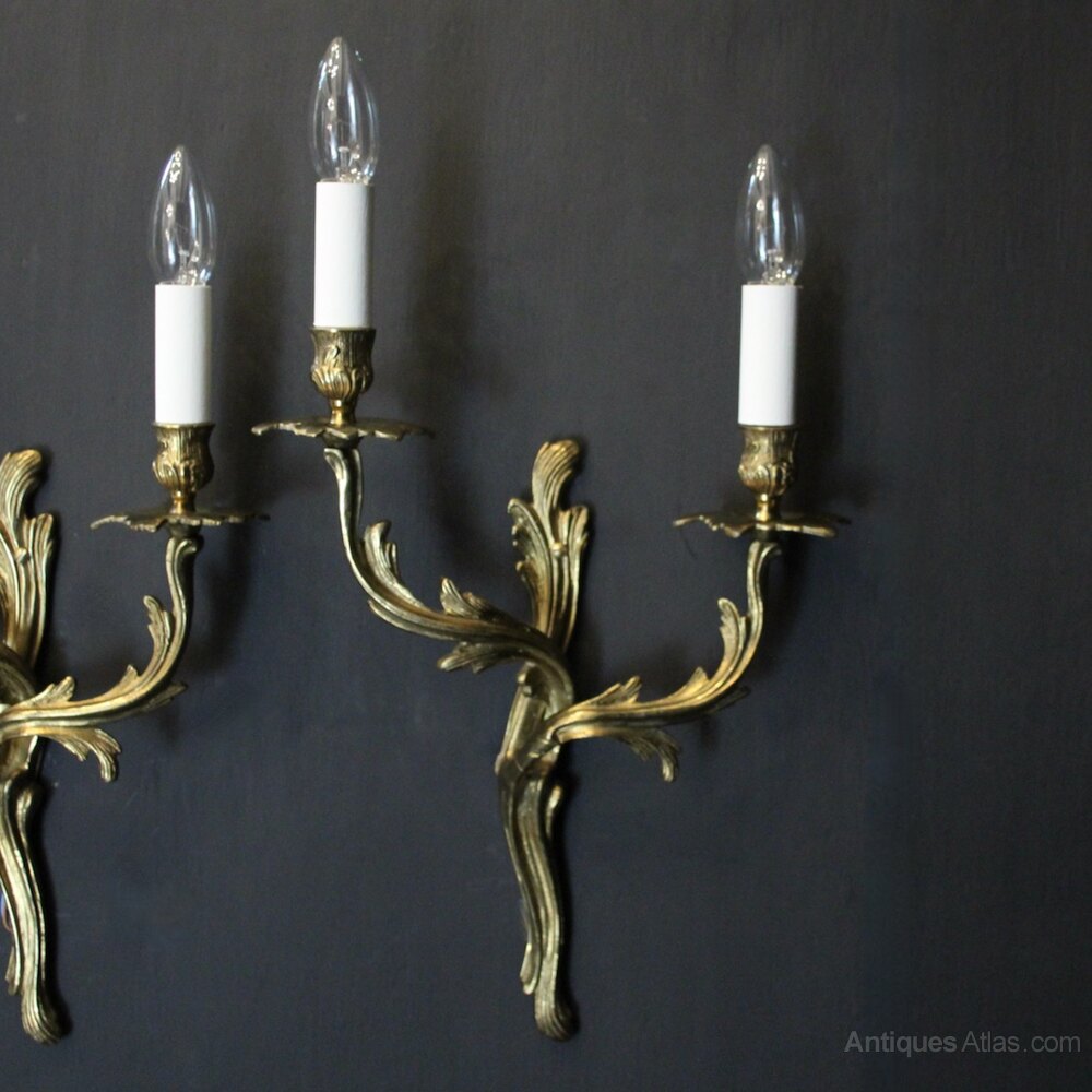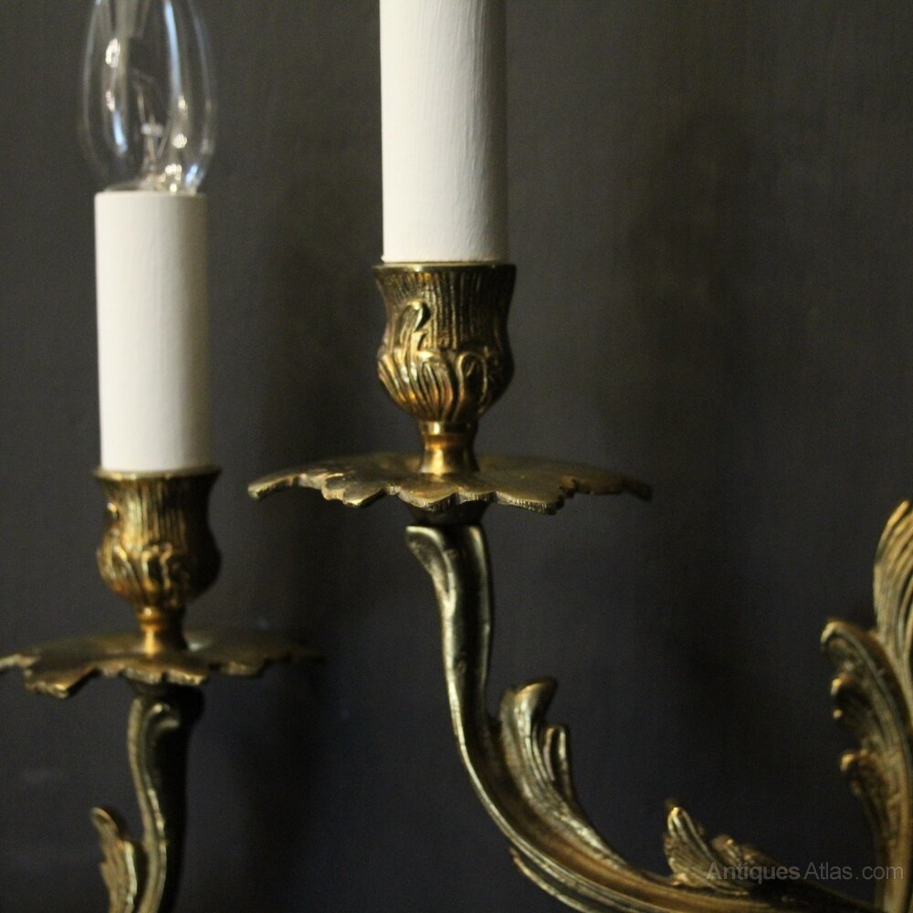French Pair Of Gilded Brass Twin Arm Wall Lights
