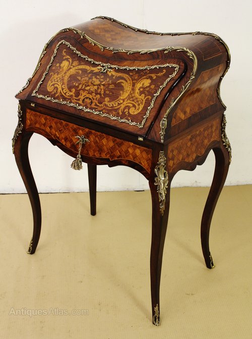 Antique Inlaid Rosewood Marquetry Writing Desk