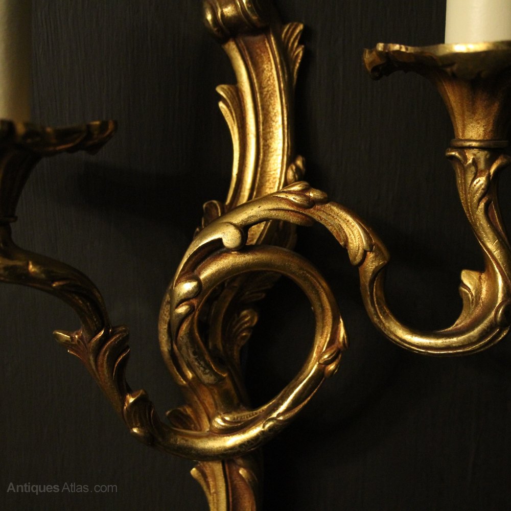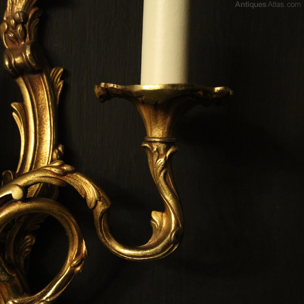 French Pair Of Gilded Bronze Antique Wall Lights