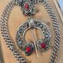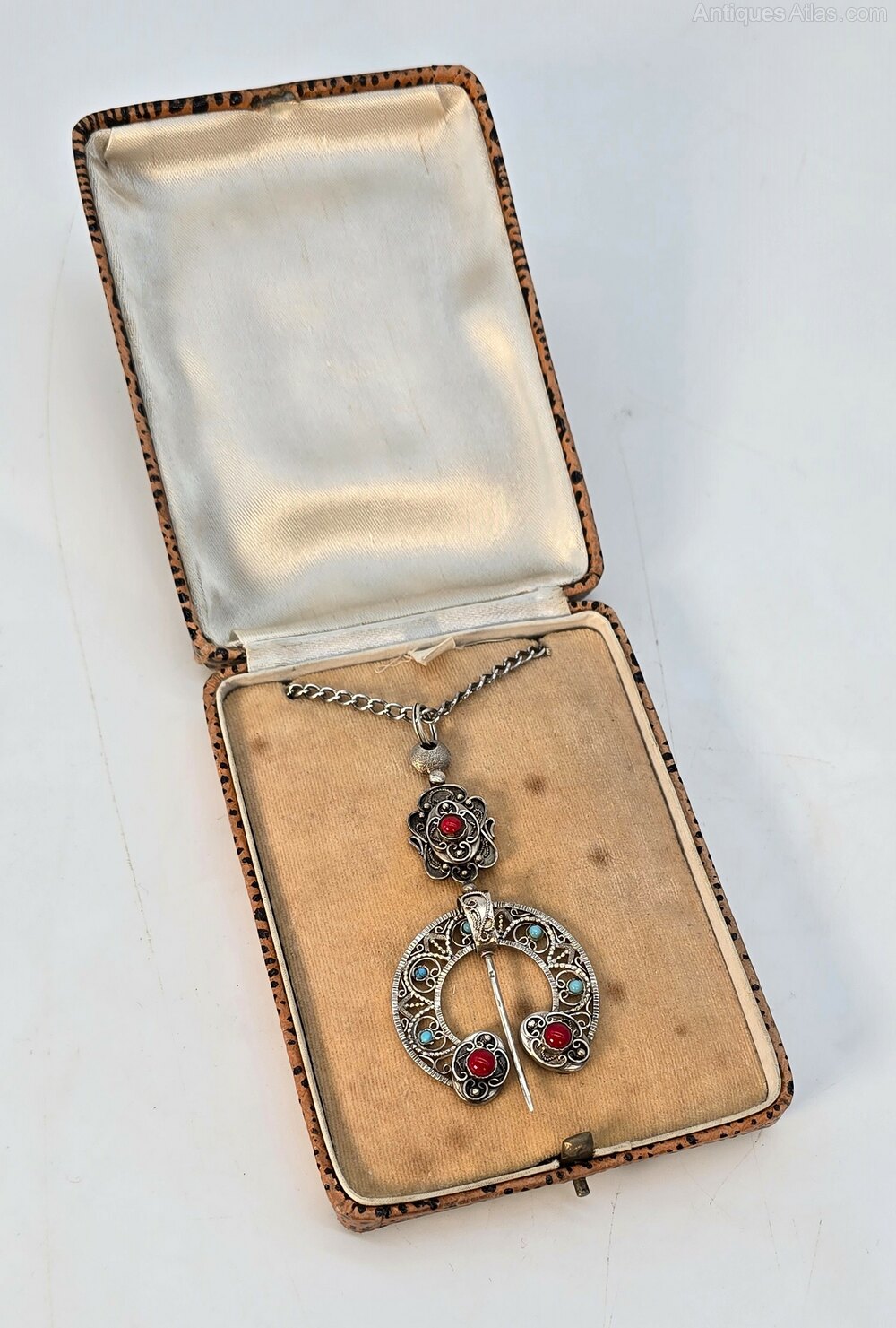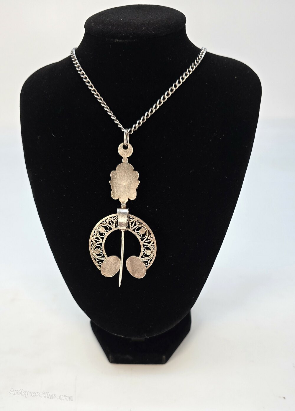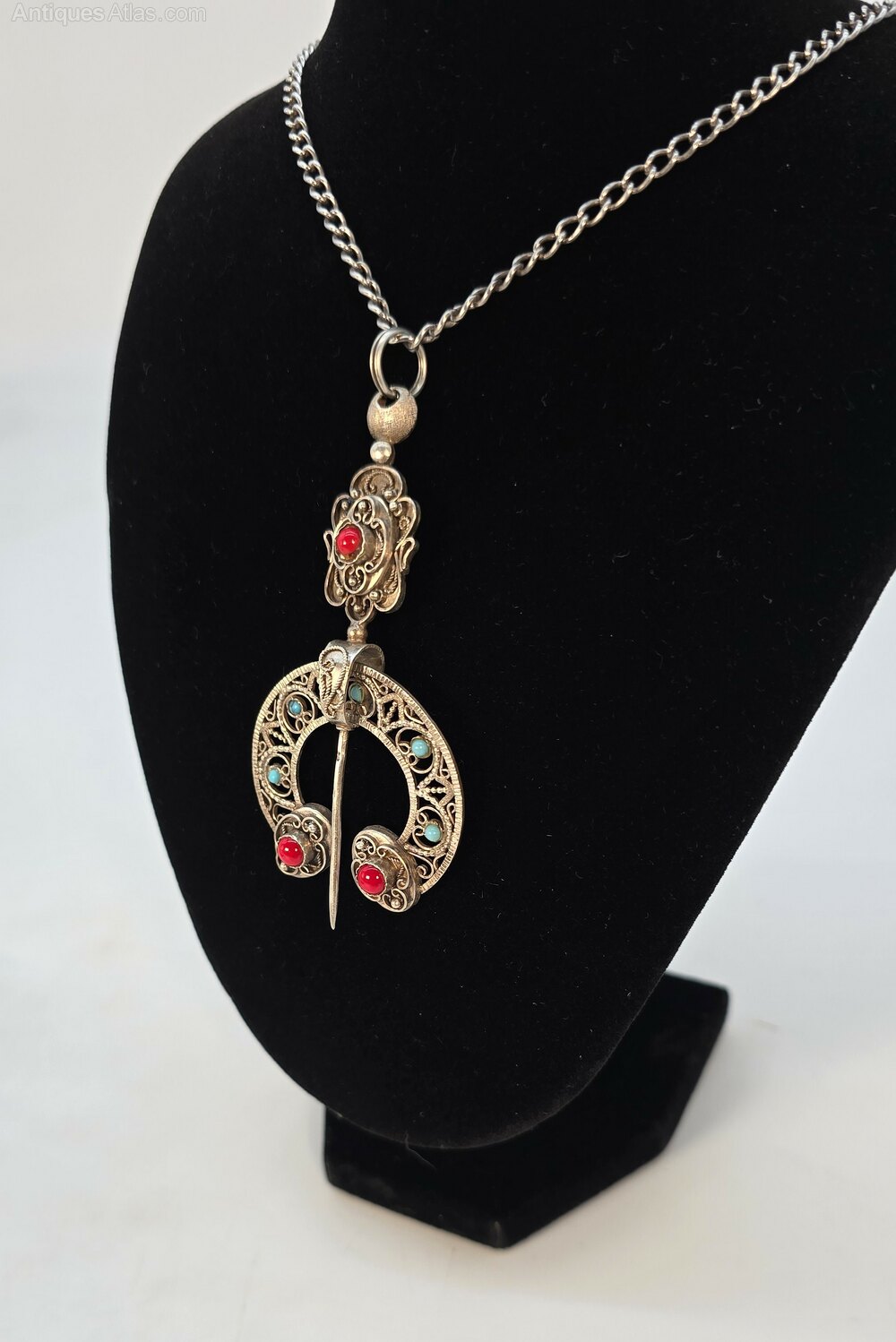 This decorative piece is made to a design of an ancient penannular brooch and could be worn this way if removed from the chain.