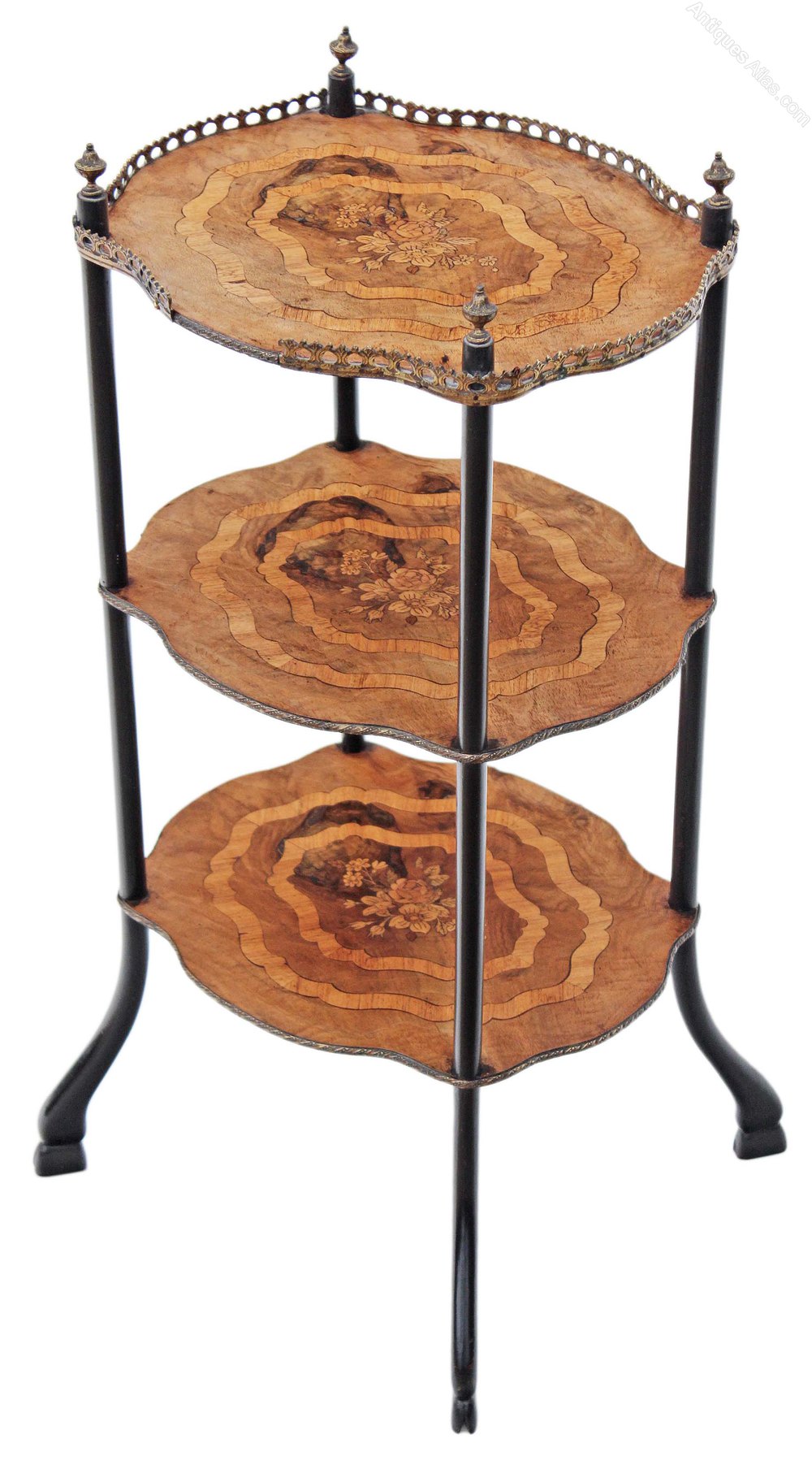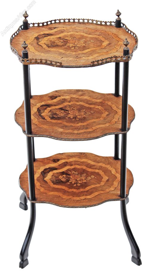 Antique French inlaid walnut etagere, whatnot, side or occasional table....could even be used as an impressive cake stand.
