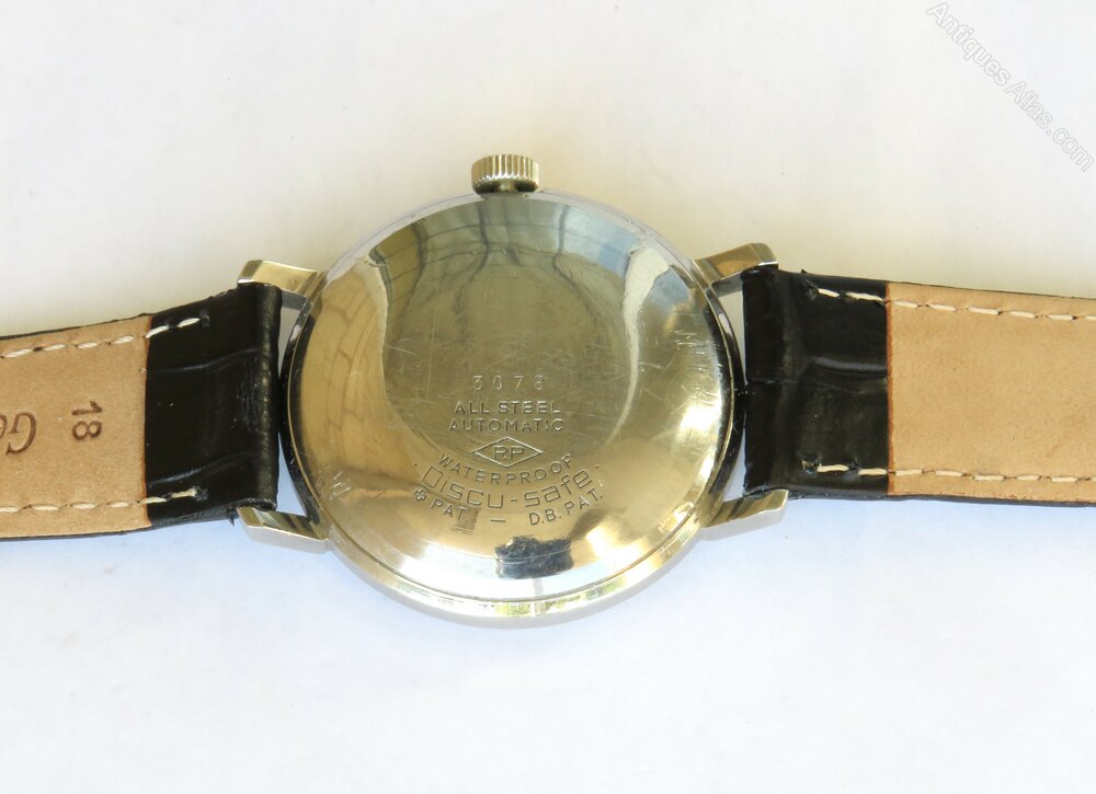 The signed dial is in its original finish with original hands, centre seconds hand and date display… this is an early form of quickset date which is initially set by turning the hands repeatedly backwards and forwards between 5 past midnight and 8.30pm.