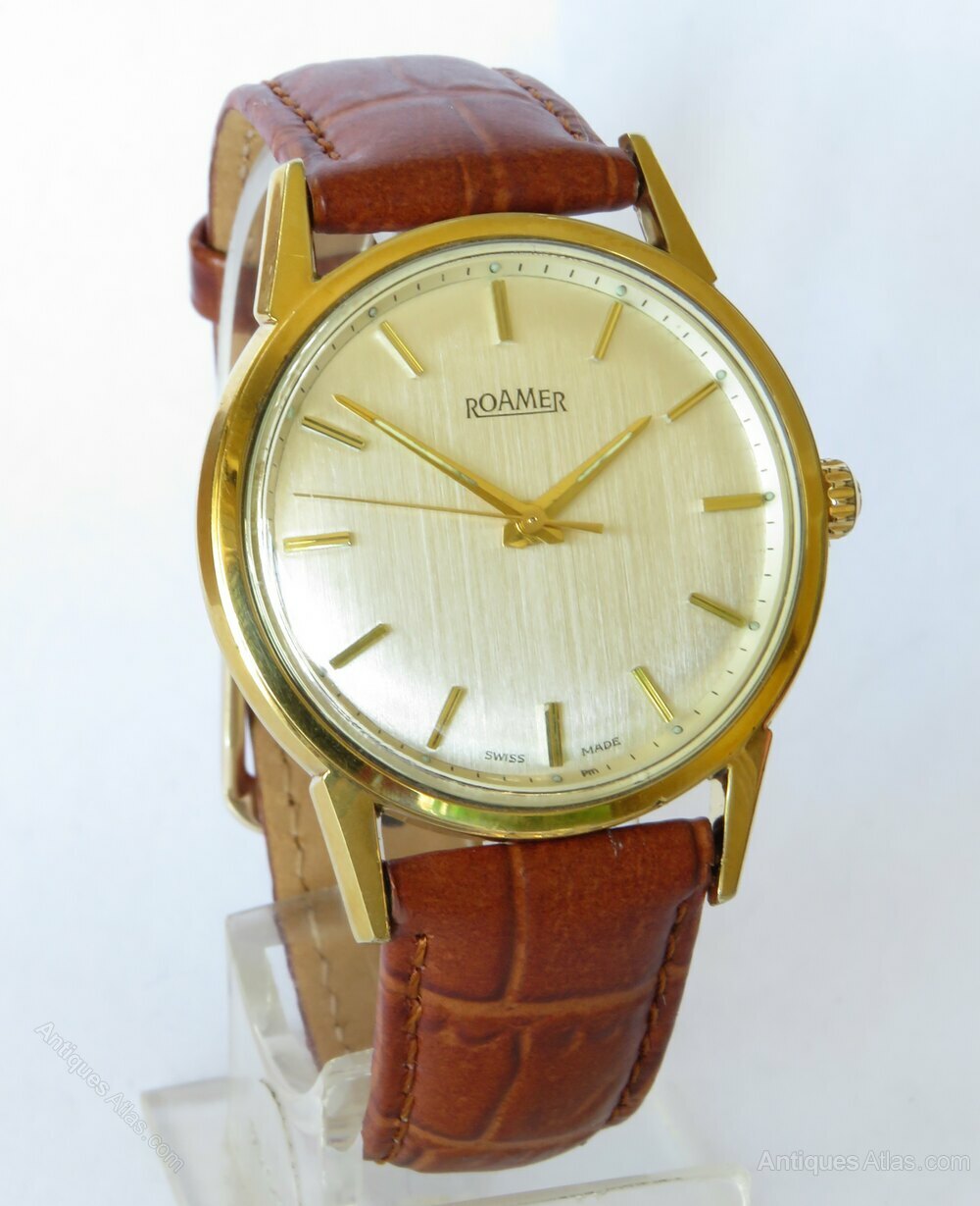 The watch measures 35mm diameter excluding the winding crown and the lugs. The case is gold plated while the case back is stainless steel. The case is in lovely condition and it has its original Roamer winding crown.