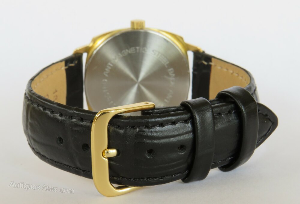The watch measures 32.5mm diameter excluding the winding crown and the lugs. The case is gold plated and it is in lovely condition. The case back is stainless steel. It states that the watch is water protected but, as with any vintage watch, it should be kept away from water and moisture.
