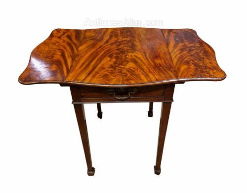 A George III "Butterfly" shaped flame mahogany Pembroke table, raised on taper legs, original roller castors and brass handle
