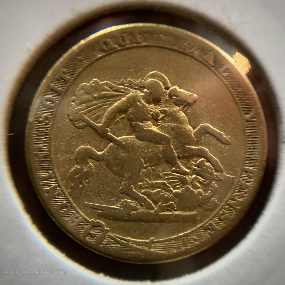 Reverse: 'HONI . SOIT . QUI . MAL . Y . PENSE' - St George slaying the Dragon right within Garter, and legend around.