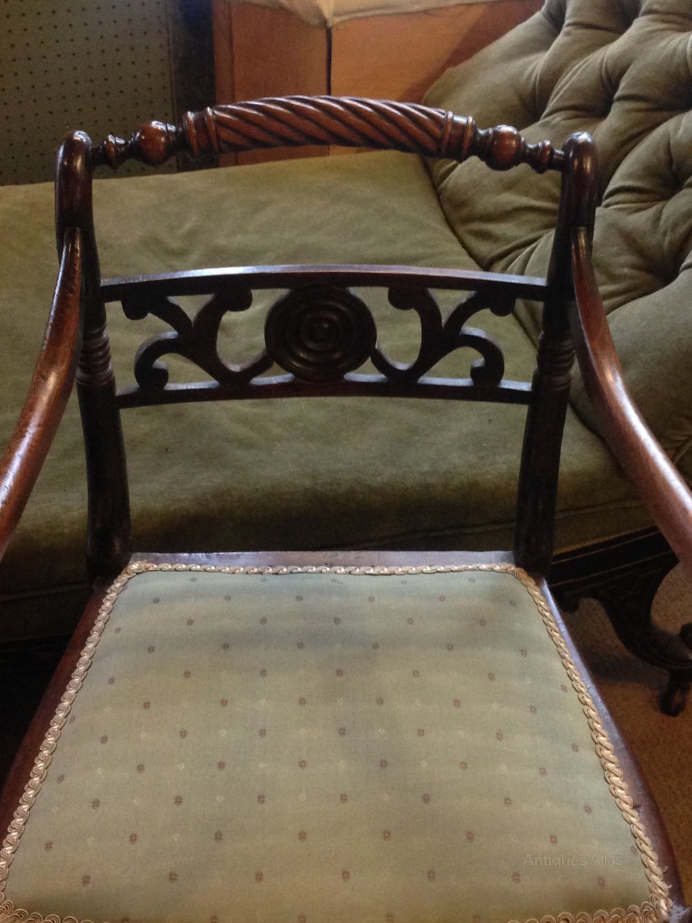George III Mahogany Carver with upholstered Seat in green fabric circa 1800 Dimensions: 31" x 19" x 17"