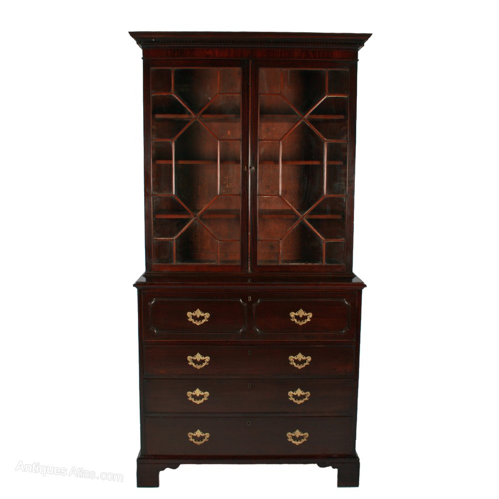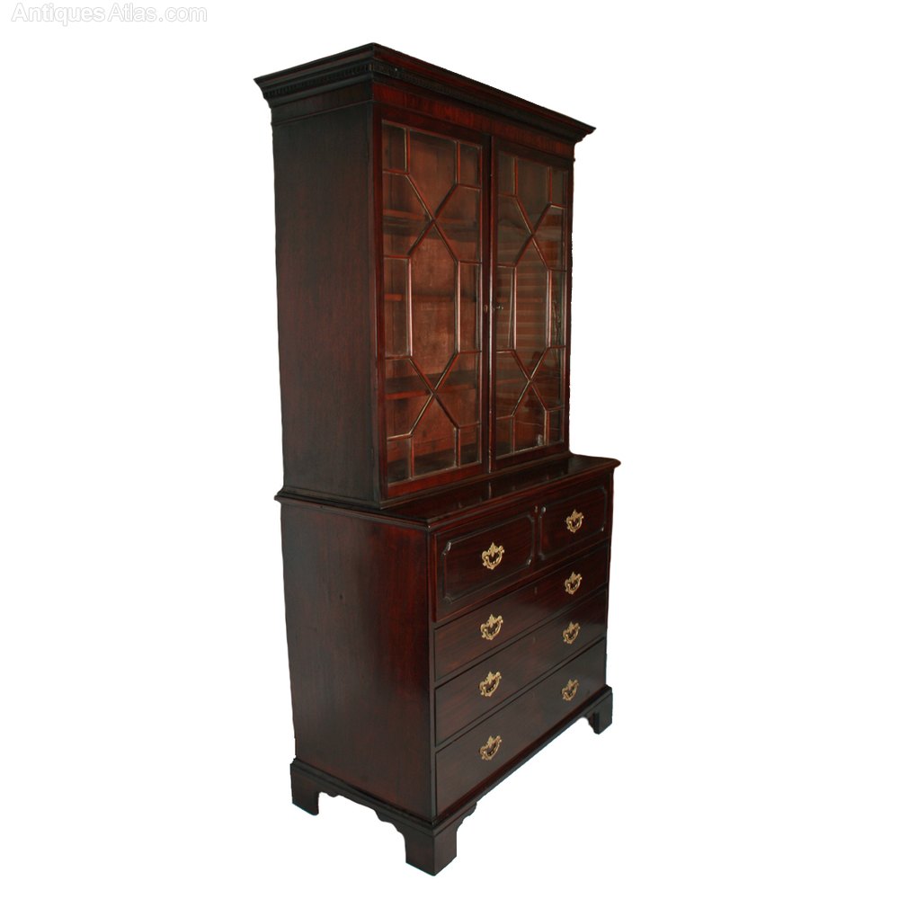 A late 18th century George III mahogany secretaire chest with a bookcase top.
