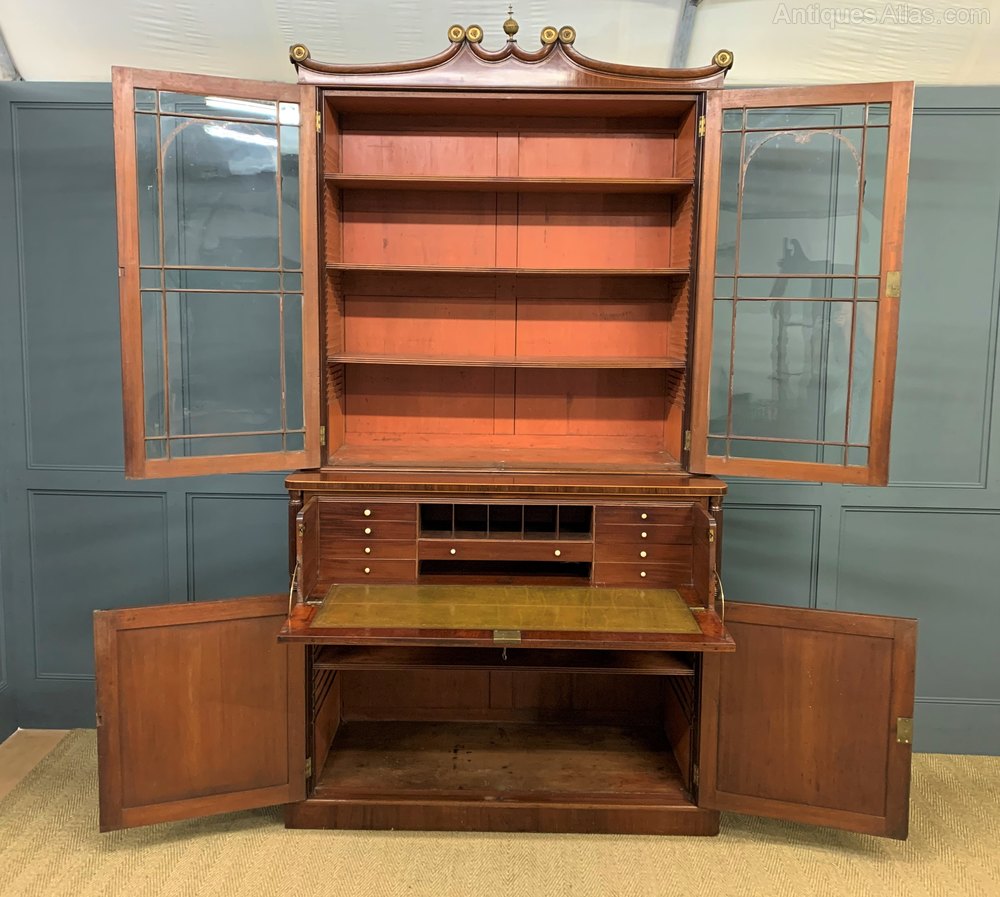 George IV Inlaid Mahogany Secretaire Bookcase