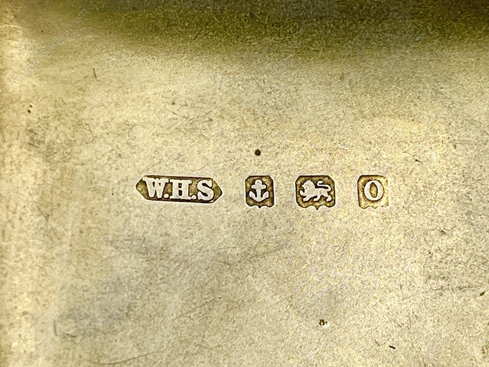The hallmarks, on the inside of the case, are well struck and clear to read. They show the lion passant for Sterling Silver, the anchor assay mark for Birmingham, the date letter o for 1913 and the W.H.S makers' mark for William Henry Sparrow.