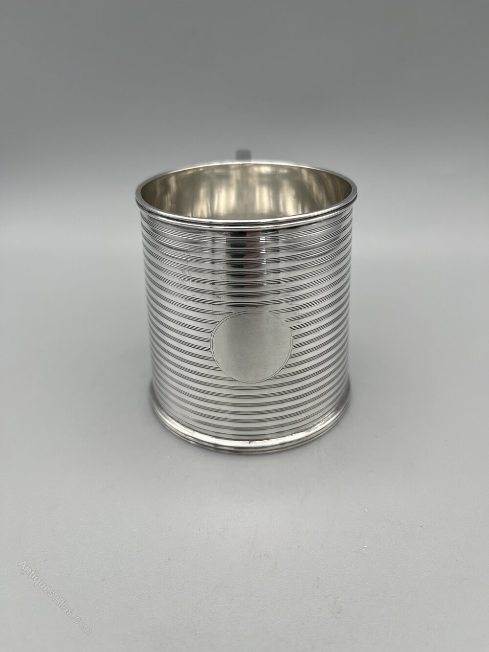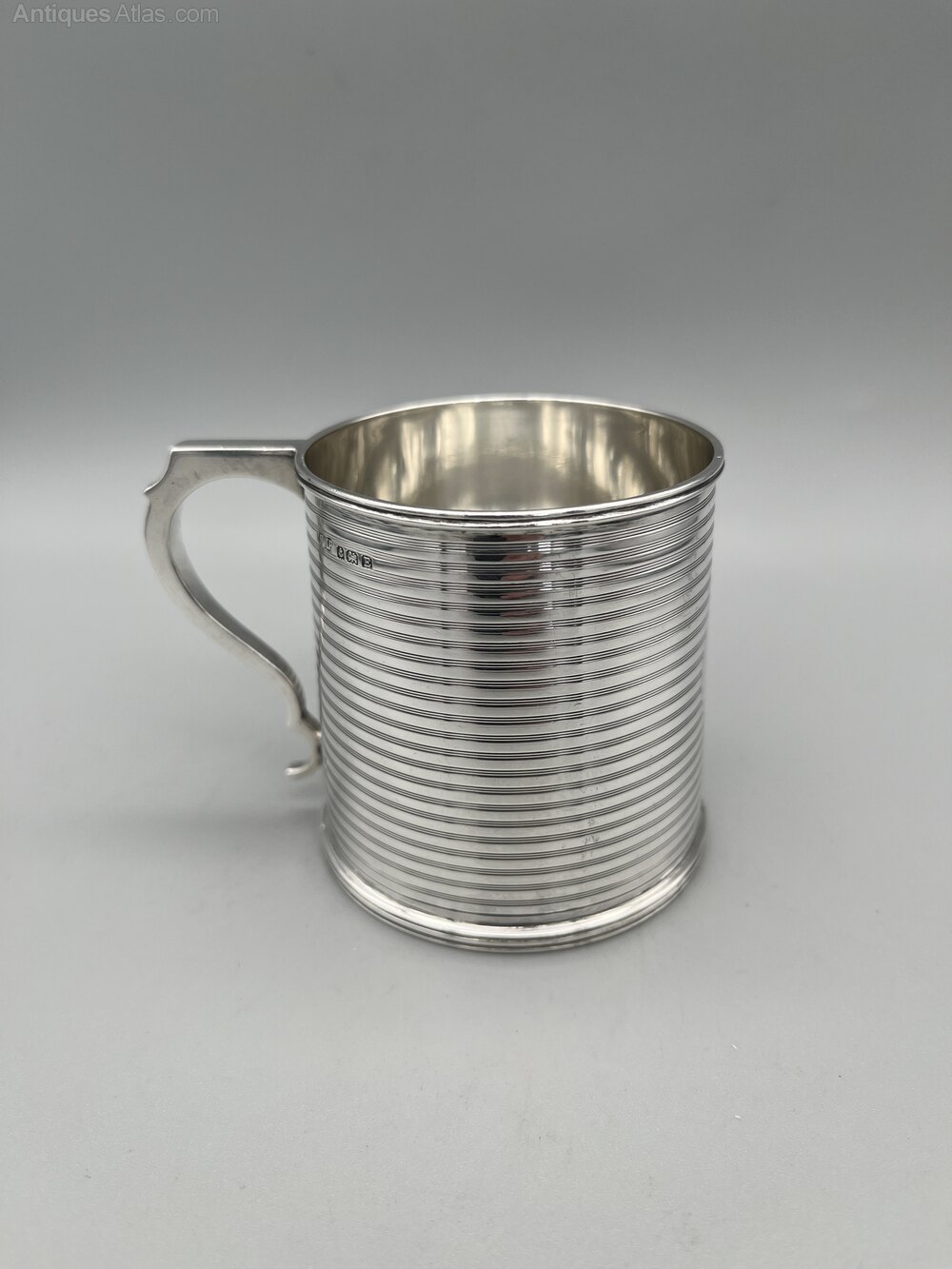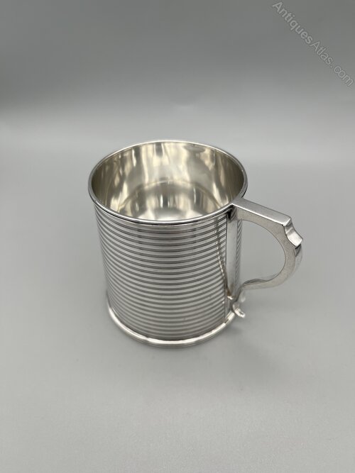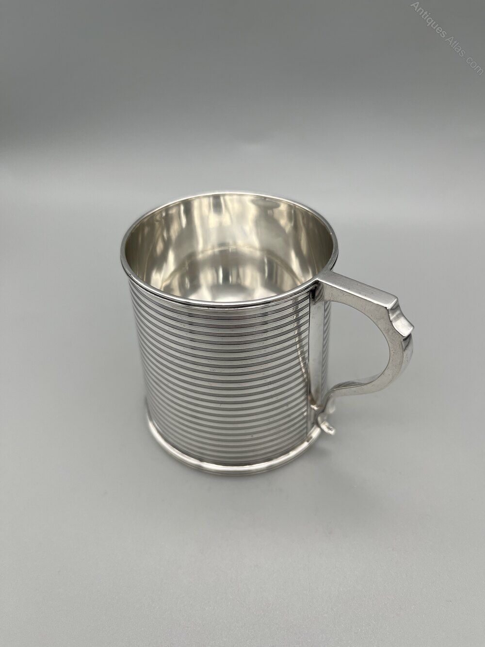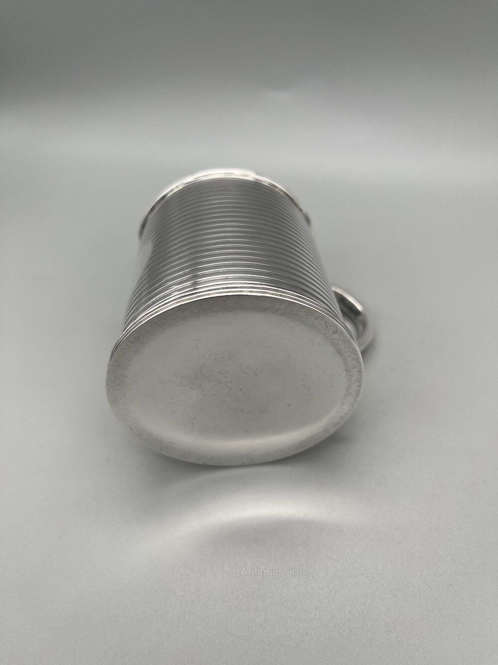 Here we have a delightful George V Sterling Silver Mug from the 1920s. The mug is of traditional tankard design with engine turned lines around the body and a blank circular cartouche at the front. It has a scroll handle with a flat top. This was almost certainly intended as a Christening Gift but would be ideal for any sort of special occasion today.
