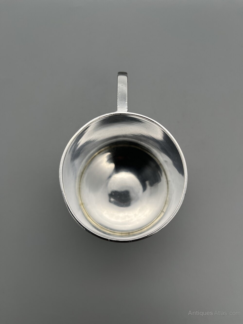 The mug is 8.5cm / 3.3ins from rim to handle, 6.5cm / 2.5ins in diameter and stands 6.5cm / 2.5ins high. It weighs in at a very respectable 100g / 3.5oz of solid Sterling Silver.