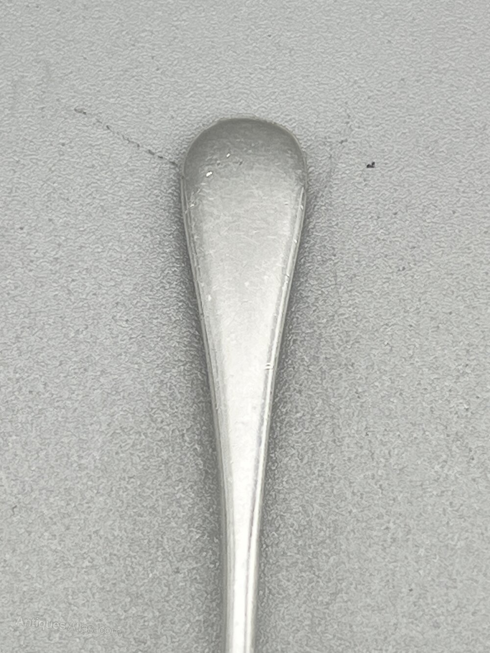 The spoon is 7.8cm / 3ins long and weighs in at 7.0g / 0.25oz of solid Sterling Silver.
