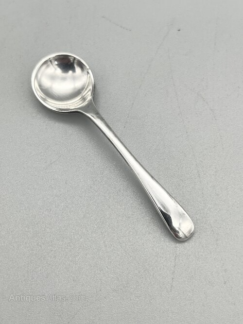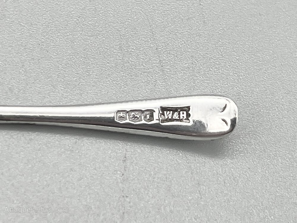 The salt spoon was made in Sheffield by famous silversmiths Walker & Hall and dates to 1926. Walker & Hall are one of the great names of English silverware. The firm was founded by George Walker in 1845 with Henry Hall joining in 1853 to form Walker & Hall. Hugely successful and very highly regarded they remained in business until they were merged with Mappin & Webb and Elkington & Co to form British Silverware in 1963.