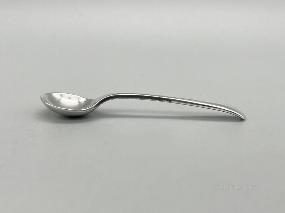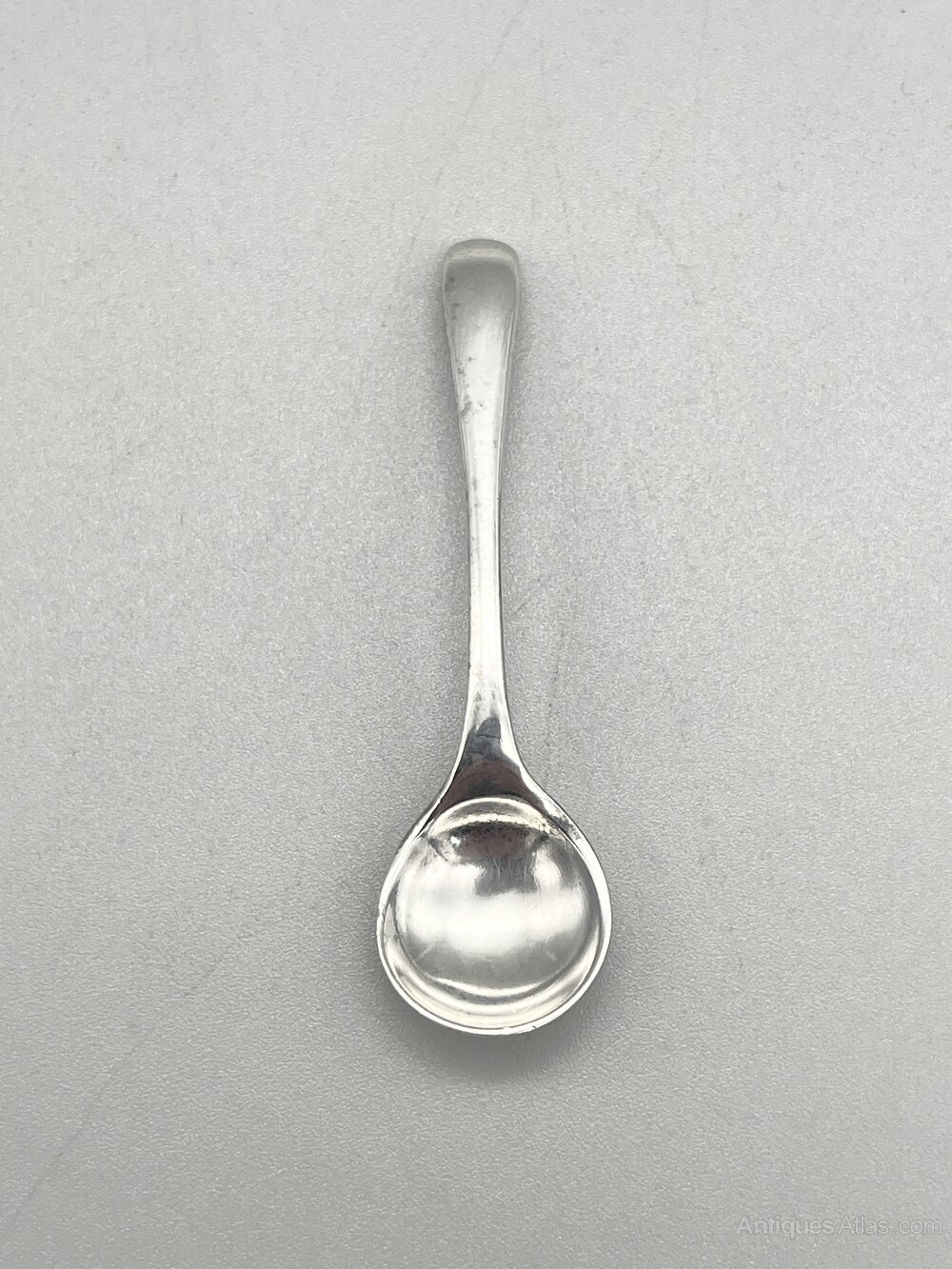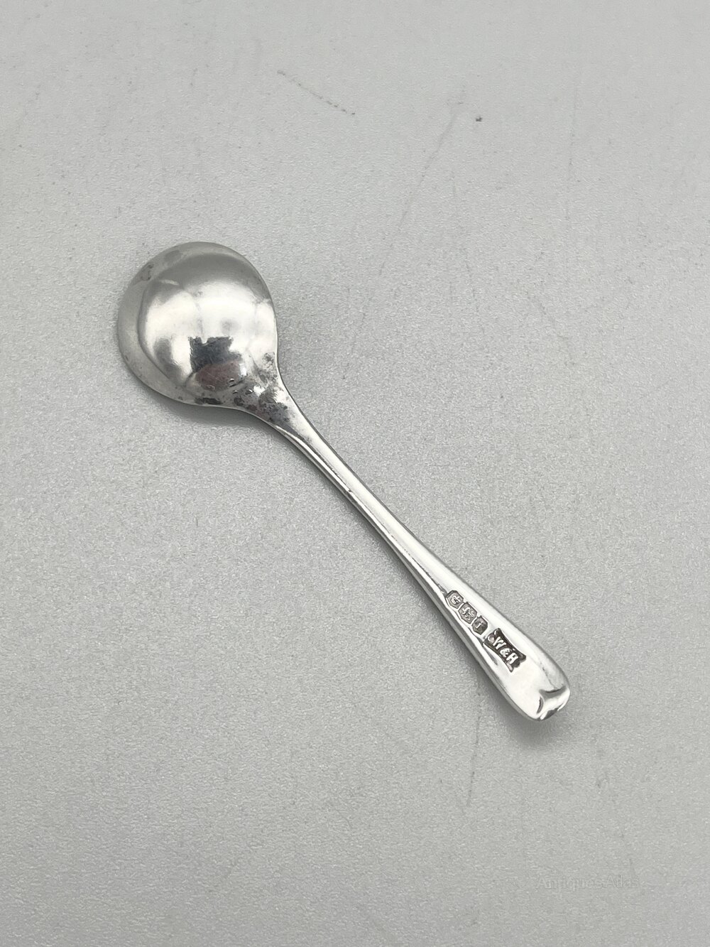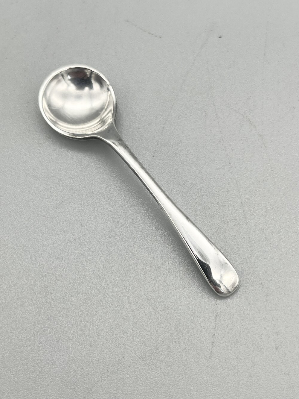The salt spoon is 5.7cm / 2.2ins long and weighs 4.2g / 0.15oz of solid Sterling Silver.