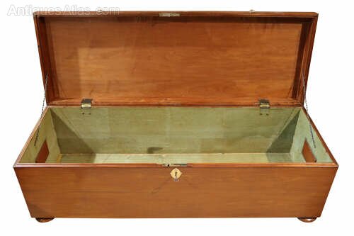 Set on shaped bun feet and finished with a warm patina, this Georgian trunk showcases the timeless craftsmanship and elegance of period antique furniture. Whether used at the foot of a bed or as a striking hallway piece, this antique mahogany chest brings both function and heritage charm.