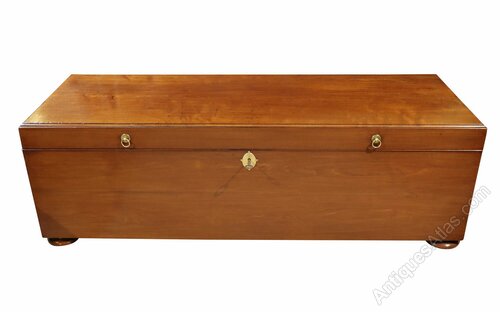 This exceptionally large Georgian blanket box is crafted from rich Cuban mahogany, known for its deep tone and exceptional grain. Dating from the late 18th century, this antique chest features a traditional rectangular form with original brass carrying handles and a working lock with key. The interior is clean and spacious—ideal for storing blankets, linens, or keepsakes.