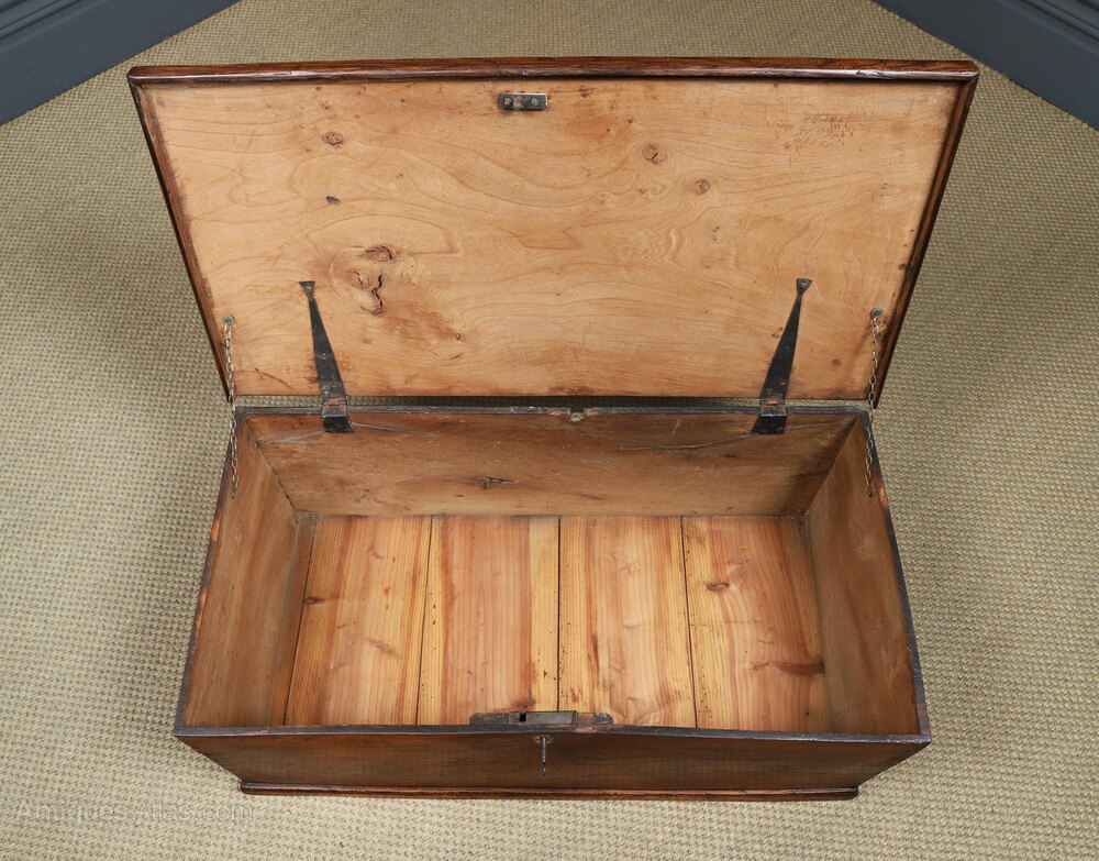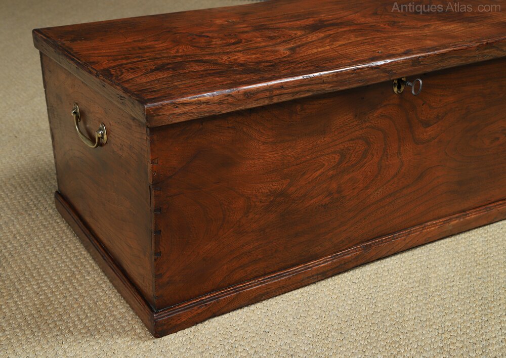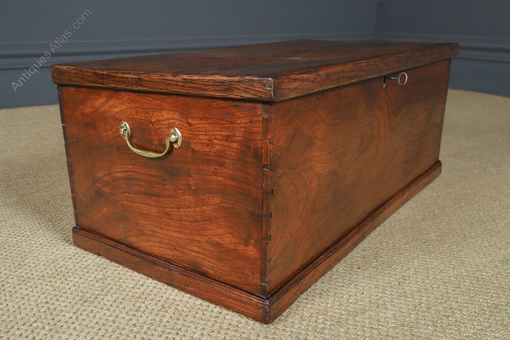 Georgian Elm Flat Top Blanket Chest Trunk (c.1830)