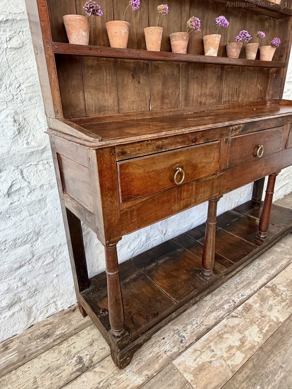 Georgian fruitwood welsh dresser from a Aberystwyth home c1800 retaining the original blacksmith made hooks, signs of historical worm treated as a precaution.