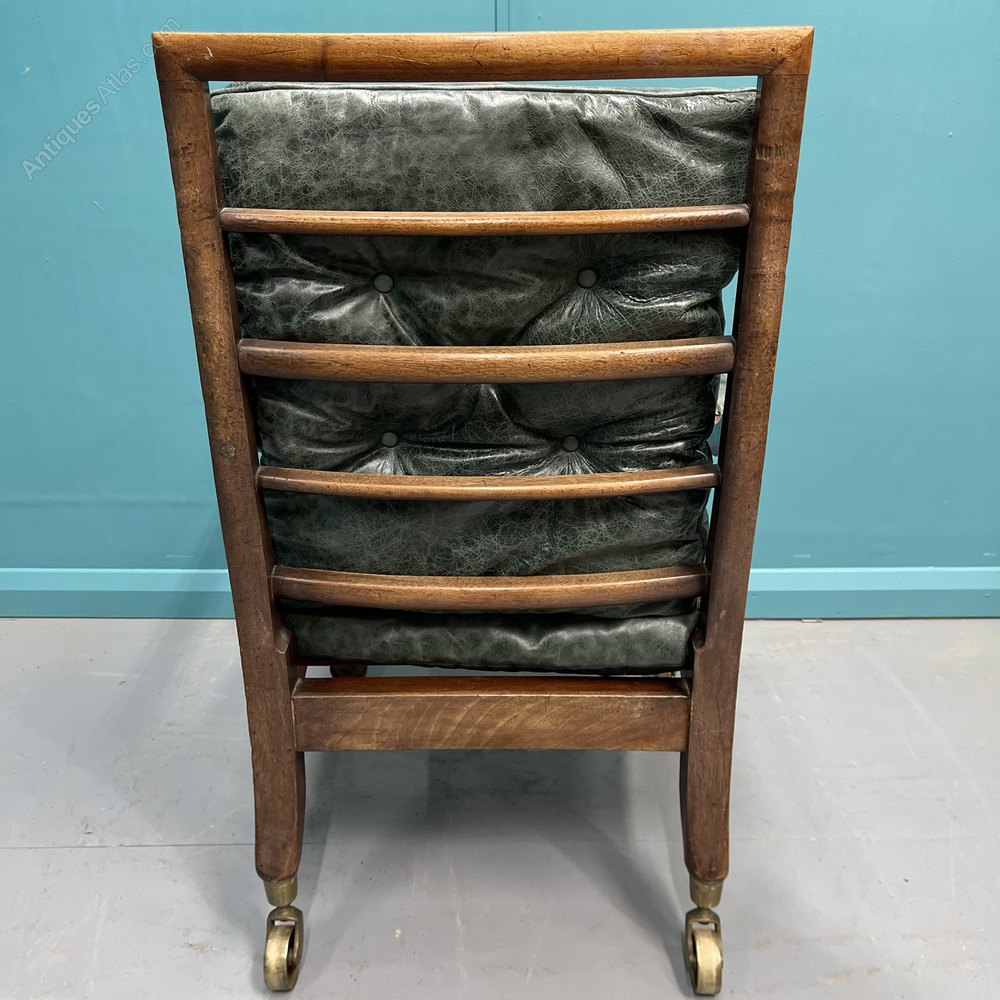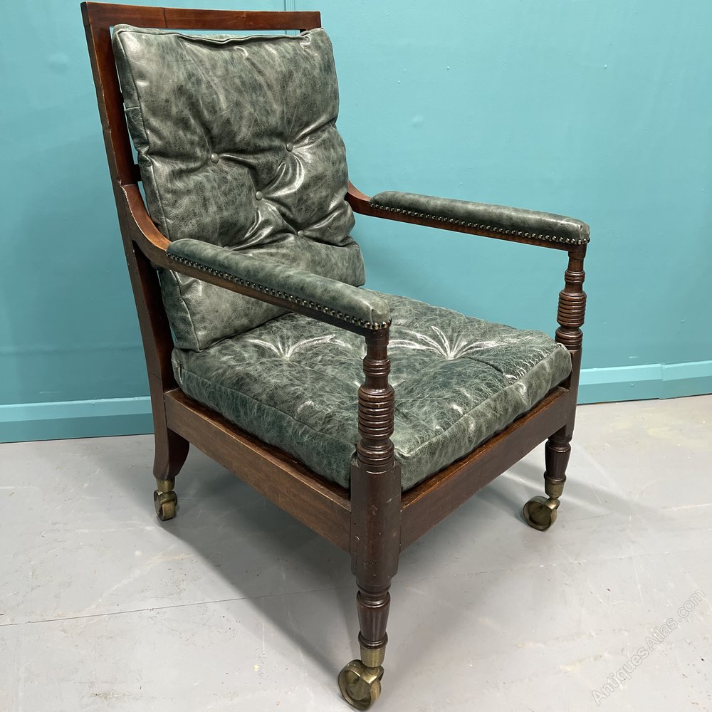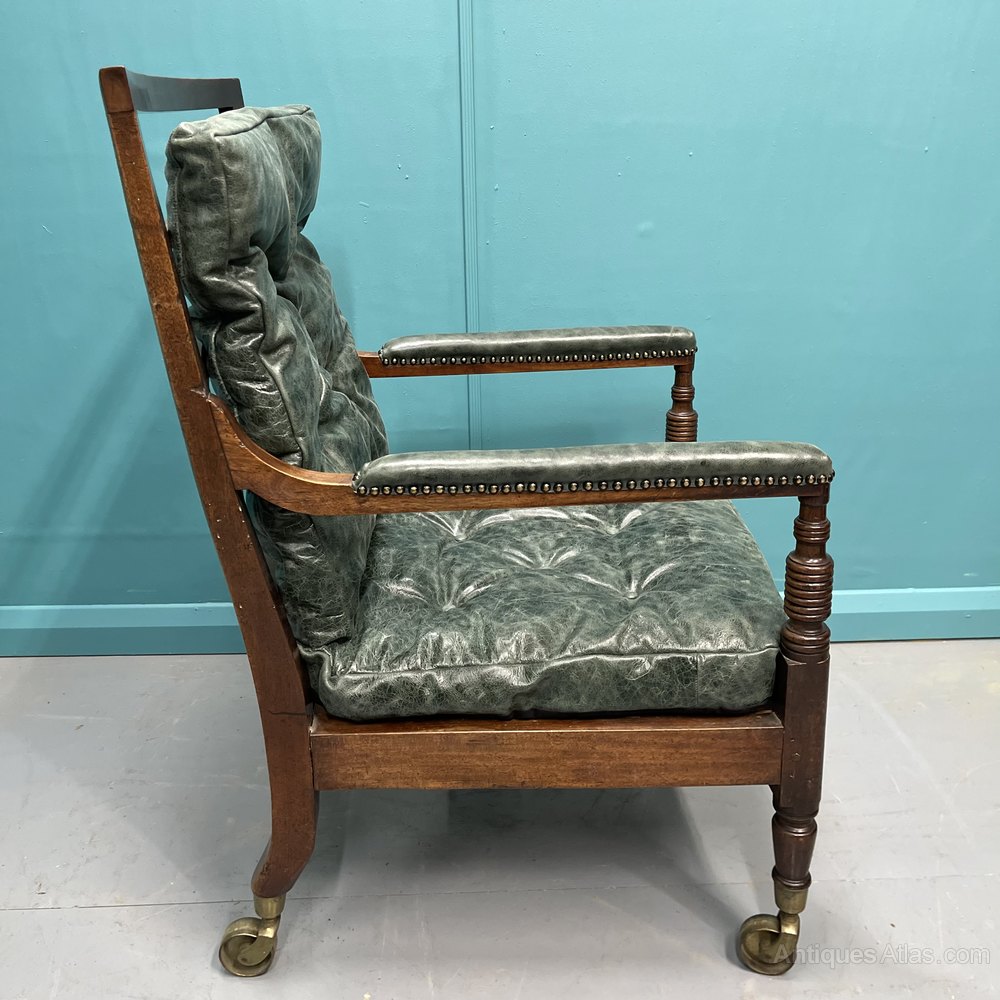 Georgian Leather Library Bergere Armchair On Castors