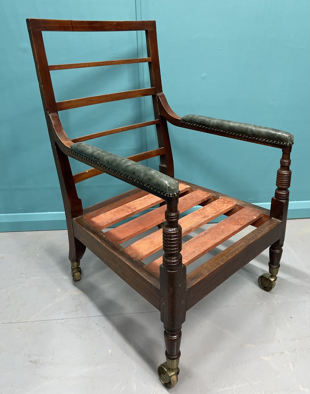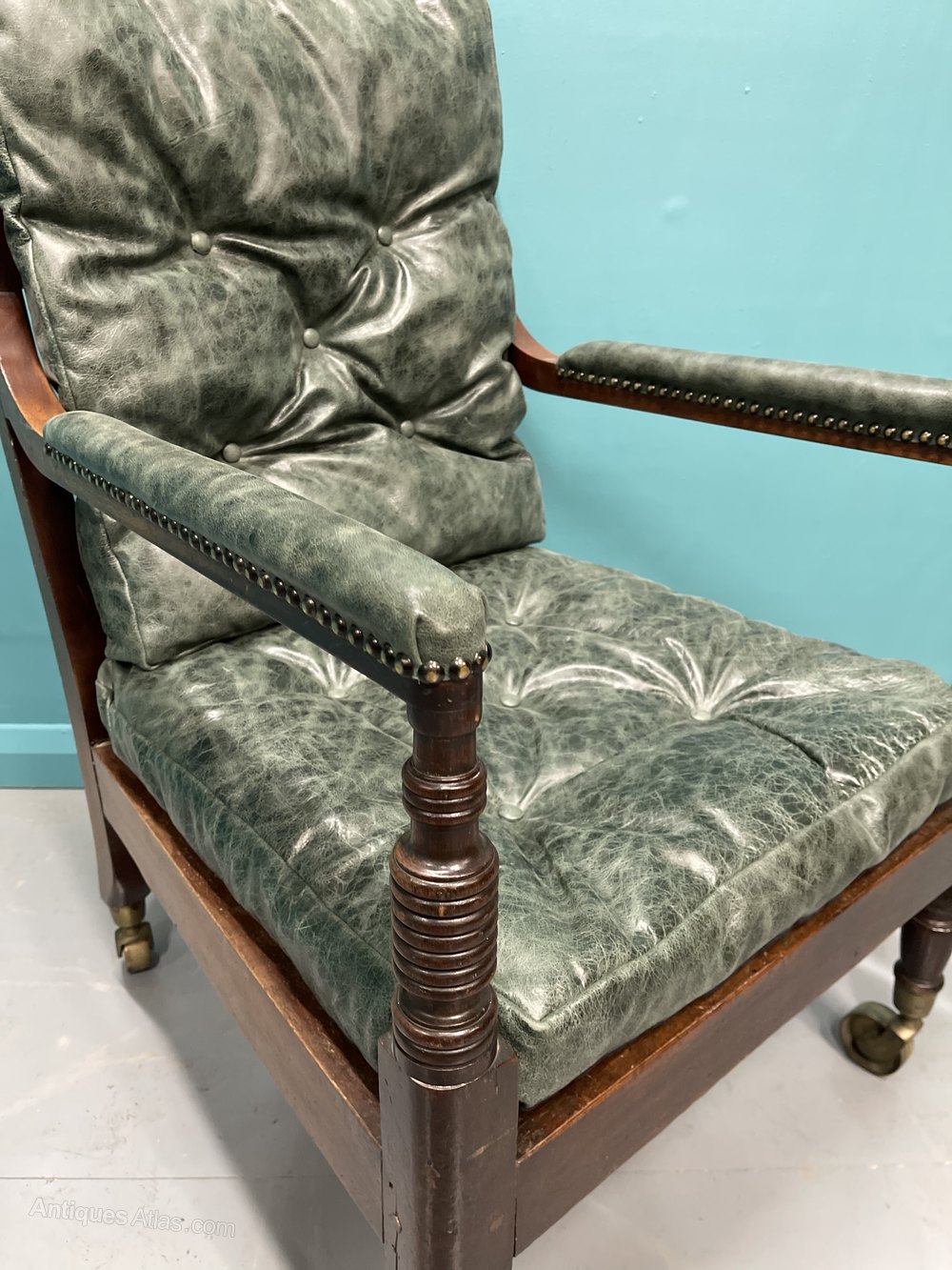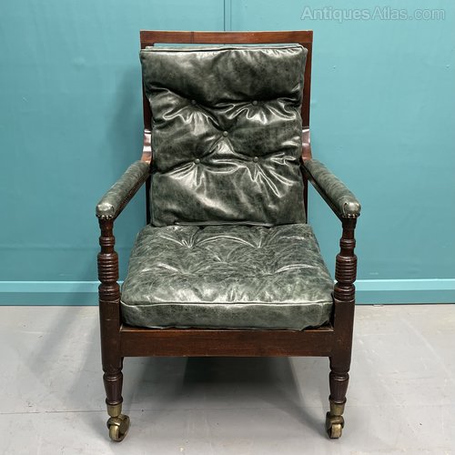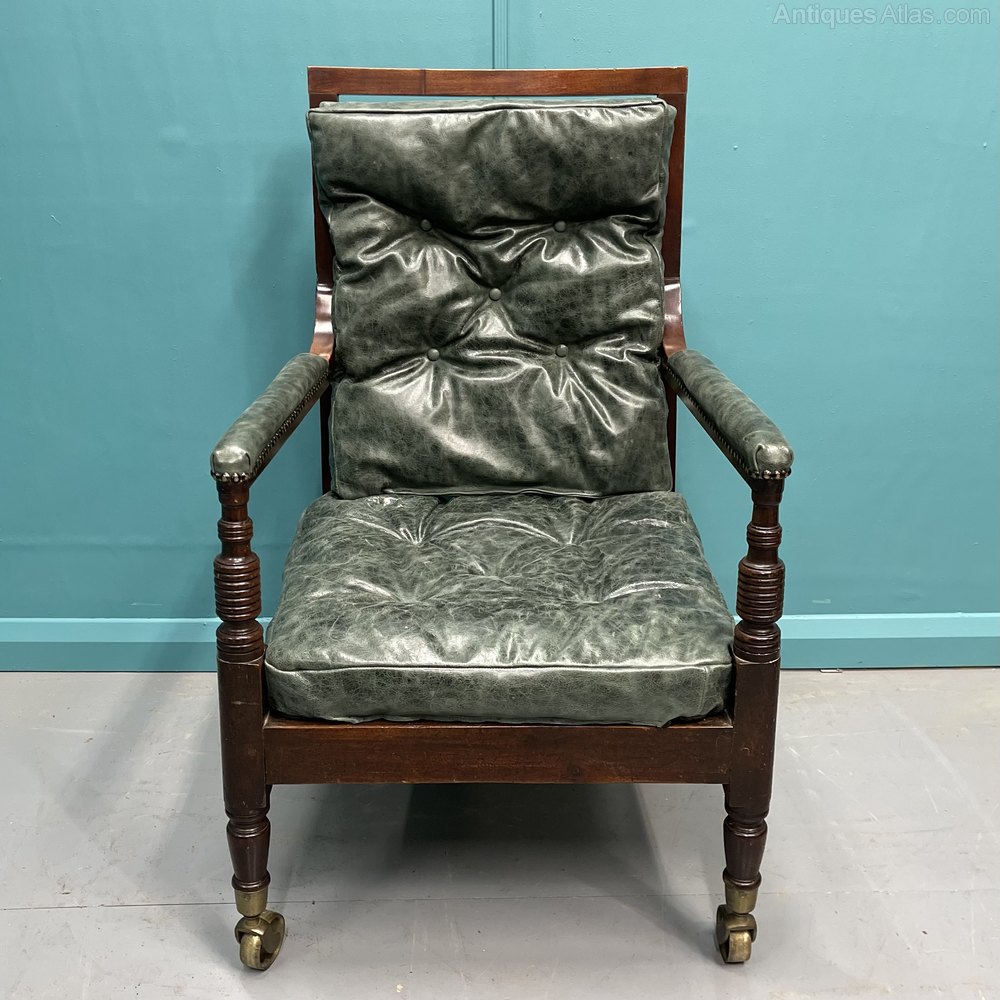 Georgian Leather Library Bergere Armchair On Castors