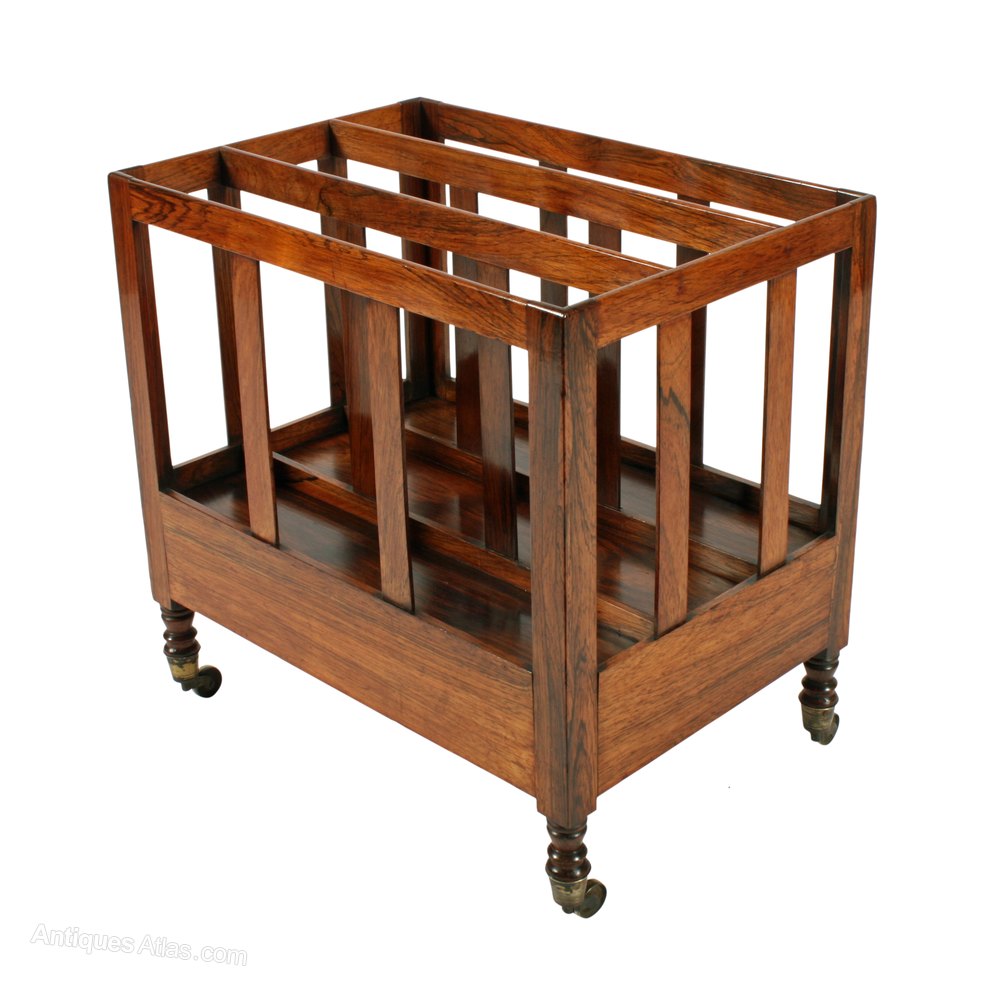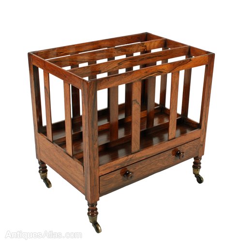 The canterbury is raised on short turned rosewood legs with gilt brass casters.