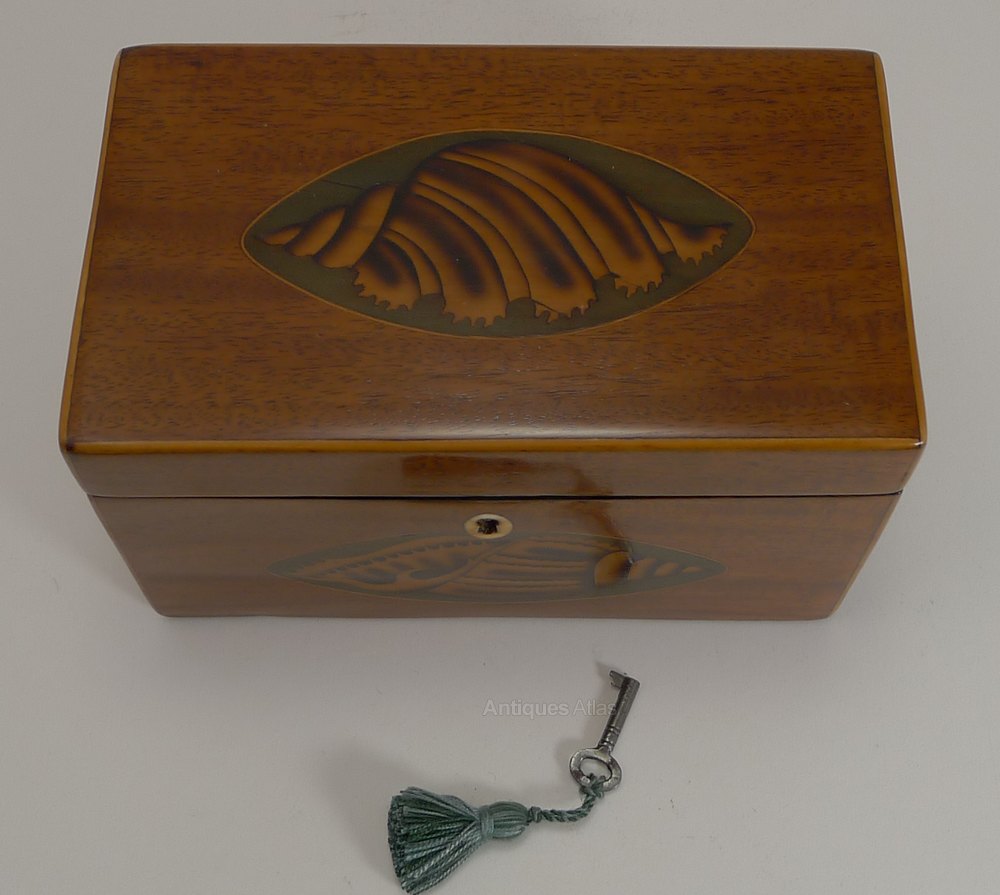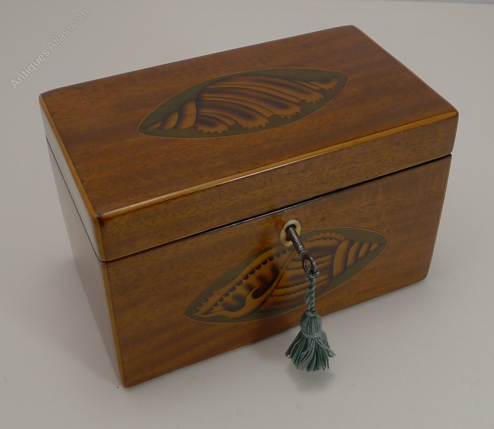 Georgian Shell Inlaid Mahogany Tea Caddy c.1800