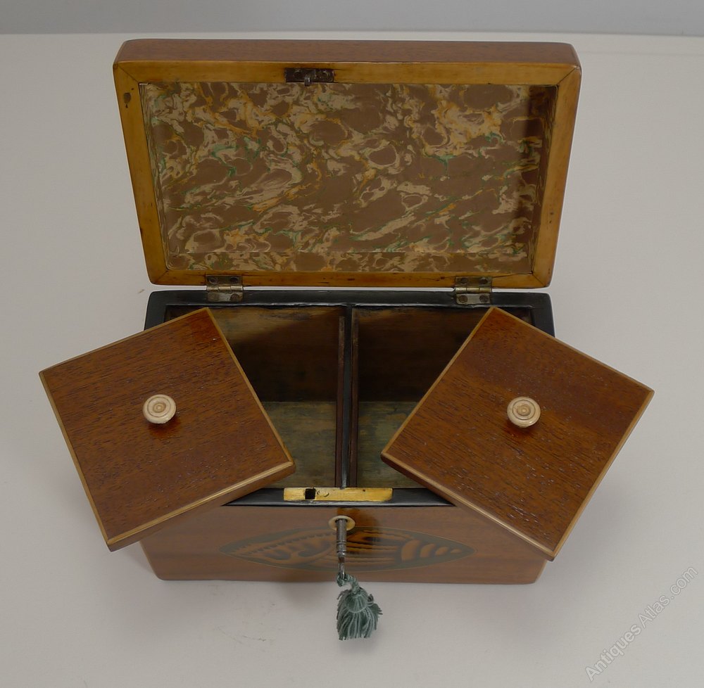 19th Century Mahogany And Ebony Inlaid Tea Caddy