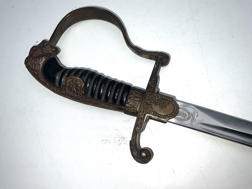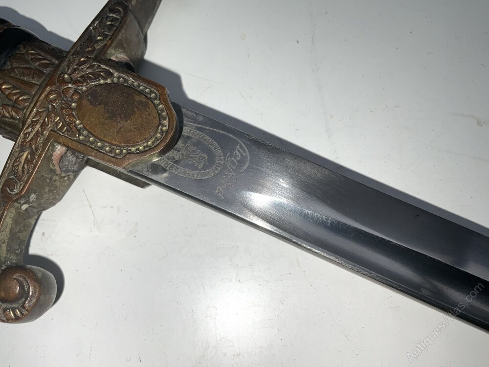 This sword features a slightly curved single-edged 30 3/8" (77 cm) blade with 3/4 length fuller, marked on the ricasso in an elaborate cartouche depicting Siegfried wielding his hammer, surrounded by the words "ERNST PACK & SOHNE M.B.H. WAFFENFABRIK", over "SOLINGEN/WAFFEN". offering free UK delivery reference DBSD2 Tel: +44 7505 165 843 We accept online payments for all our items listed: Bank transfer cash on collection personal cheques or if wishing over the phone using your debit or credit cards, also doing layby payments plan, or email giving your address details & contact number and we shall send you your items invoice to make payment with your card. Send your request to - john.strong2@gmail.com