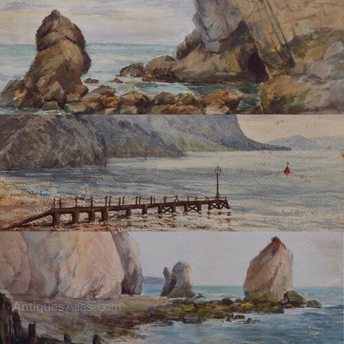 Gertrude Ellen Burrard – Freshwater, Isle of Wight / Three Watercolours.