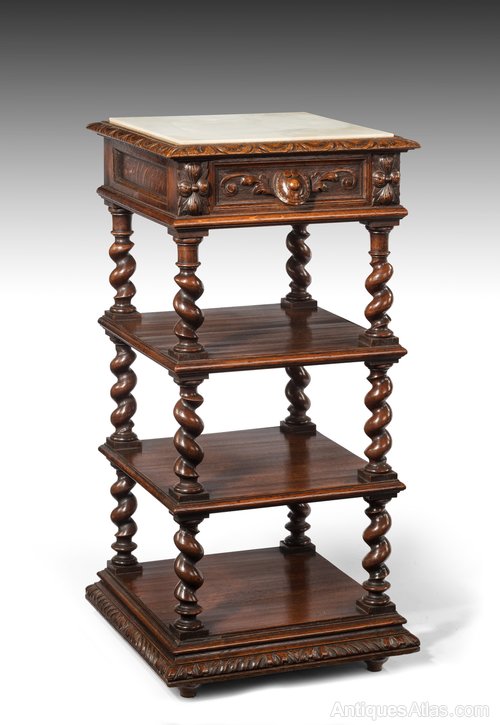 A very good quality 19th Century Oak Victorian marble topped four tier whatnot.