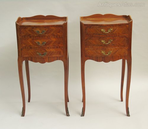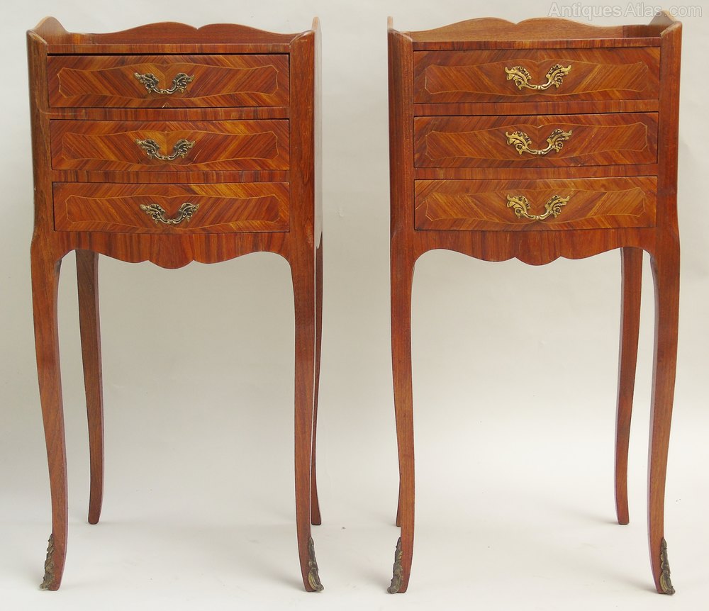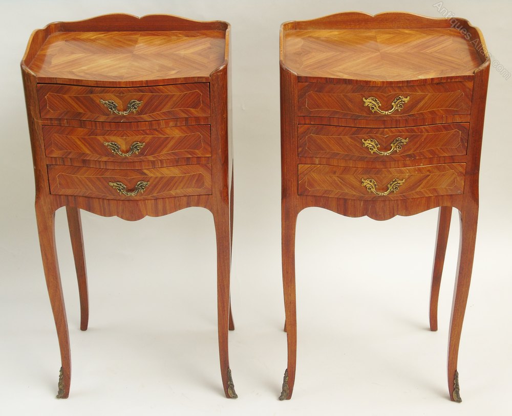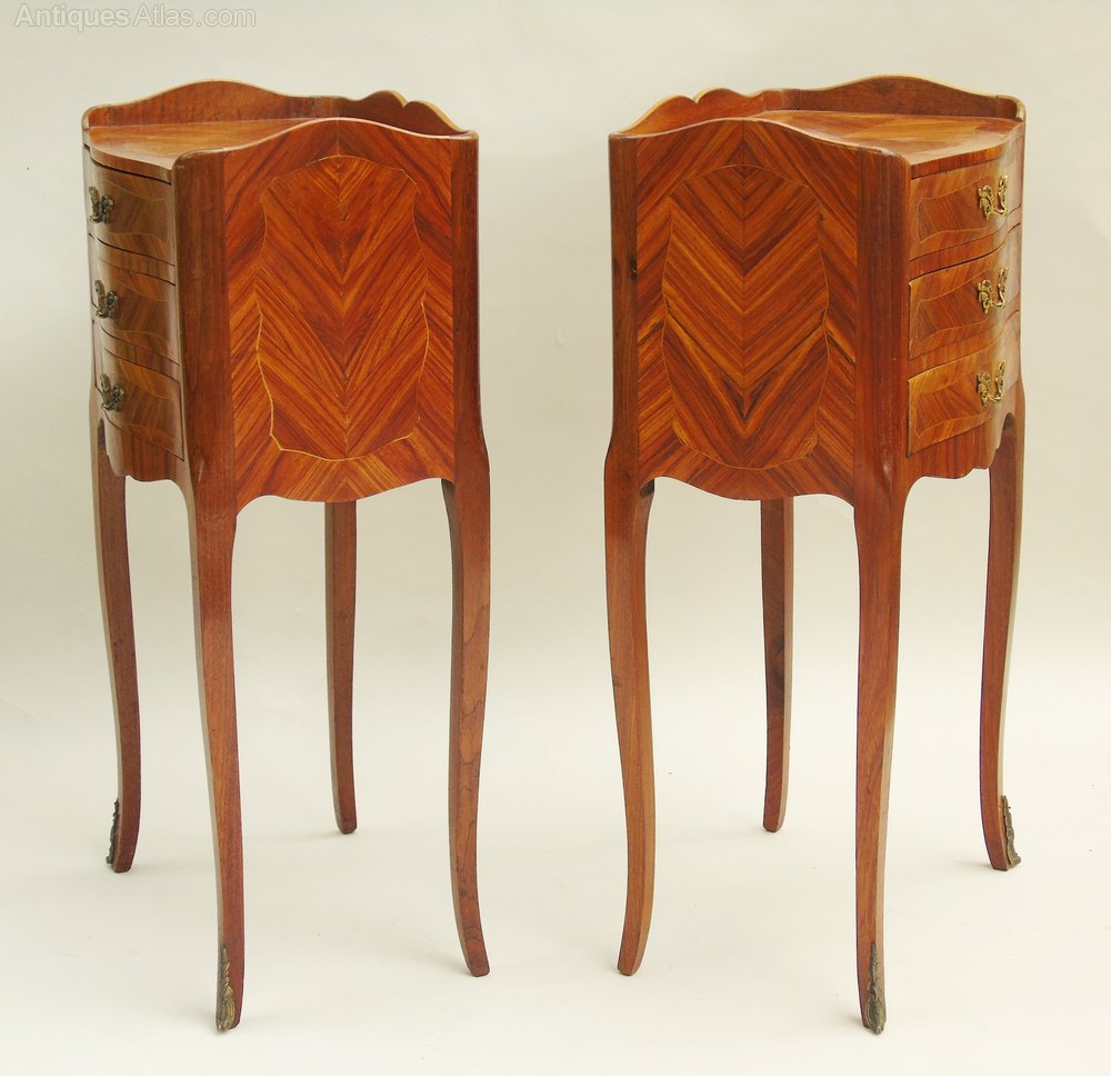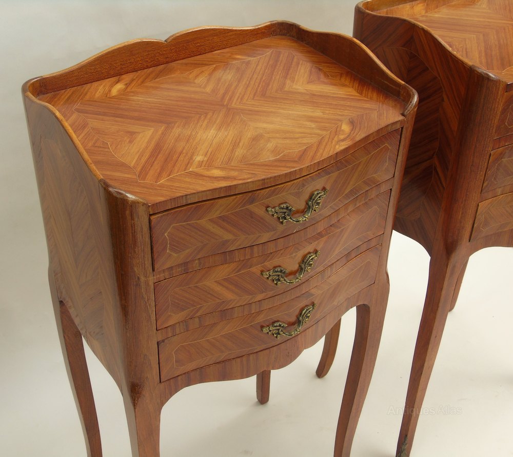 Pair Antique French Bedside Cabinets Inlaid Kingwo