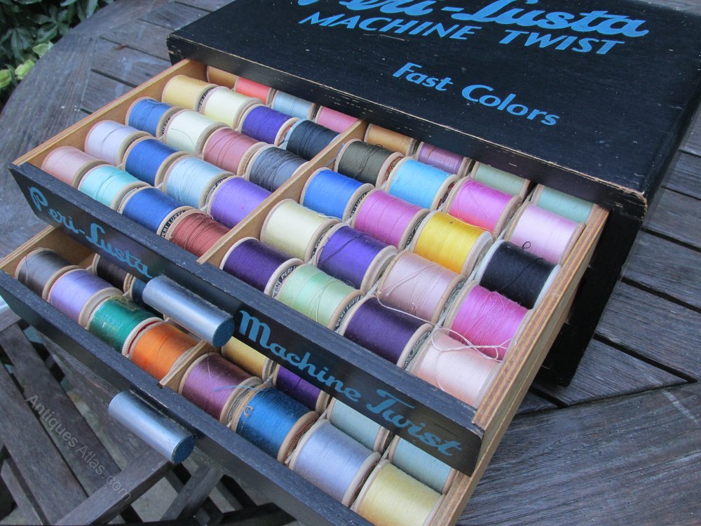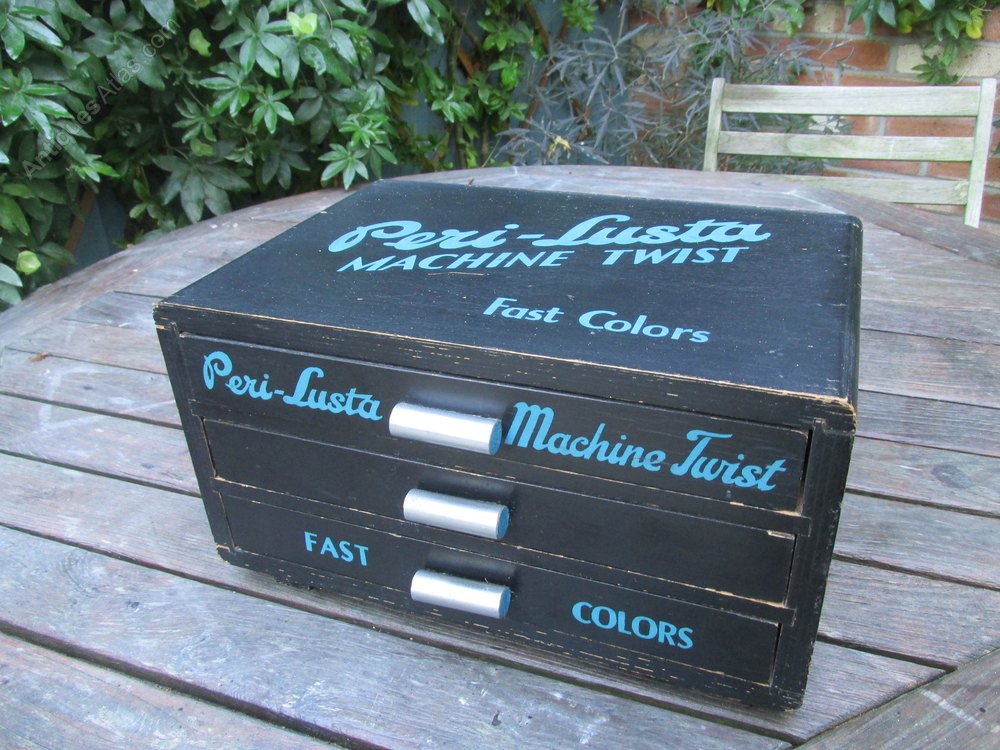 Haberdashery counter top cabinet for Peri Lusta cottons.In very good order with original cottons.