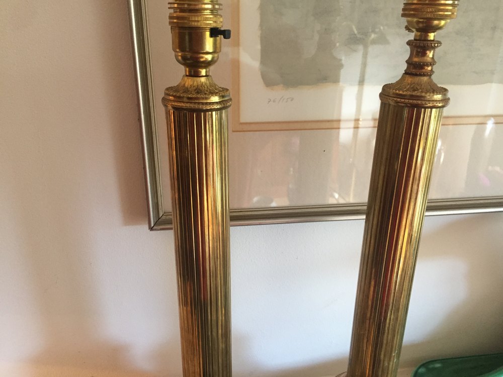 Pr. 19 C.Spelter Figure Table Lamps & Glass Shades
