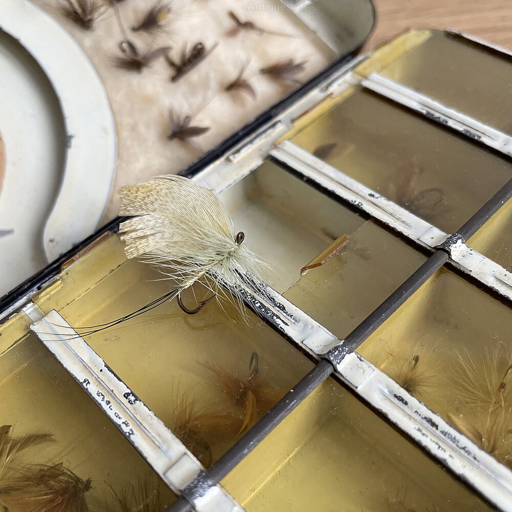 Hardy Bros Alnwick Black Japanned Dry Fly Fishing Box & Flies ANTIQUE