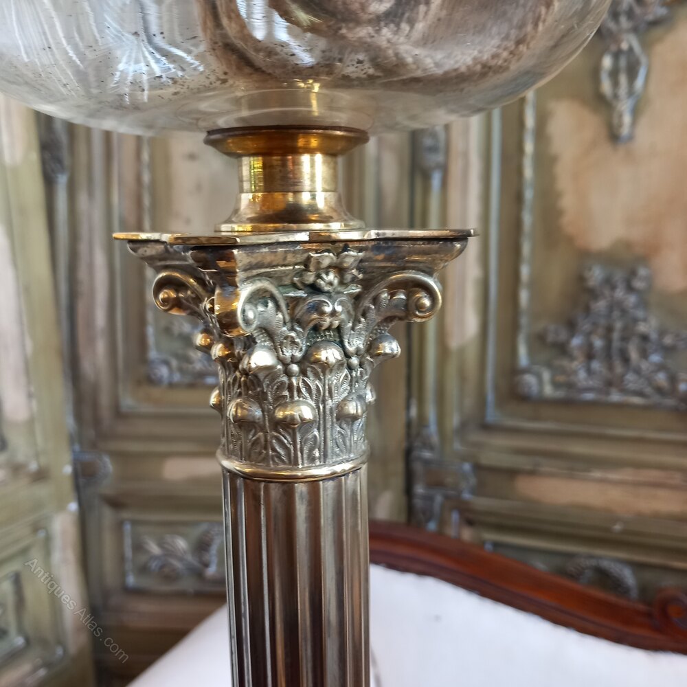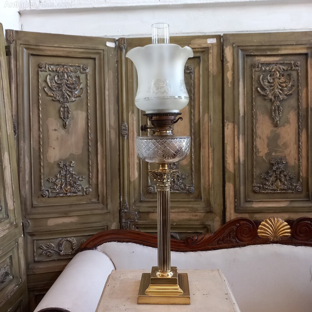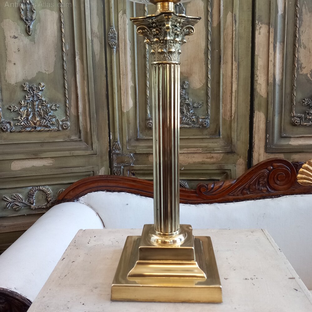 Late 19thC Brass Oil Lamp with Corinthian Column