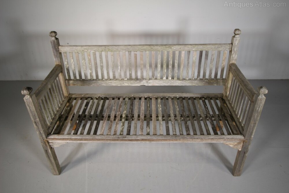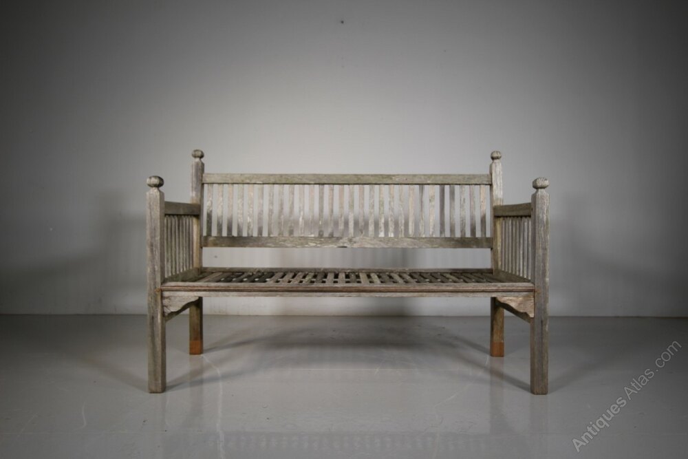 Heals of London Edwardian Antique Teak Garden Bench Seat