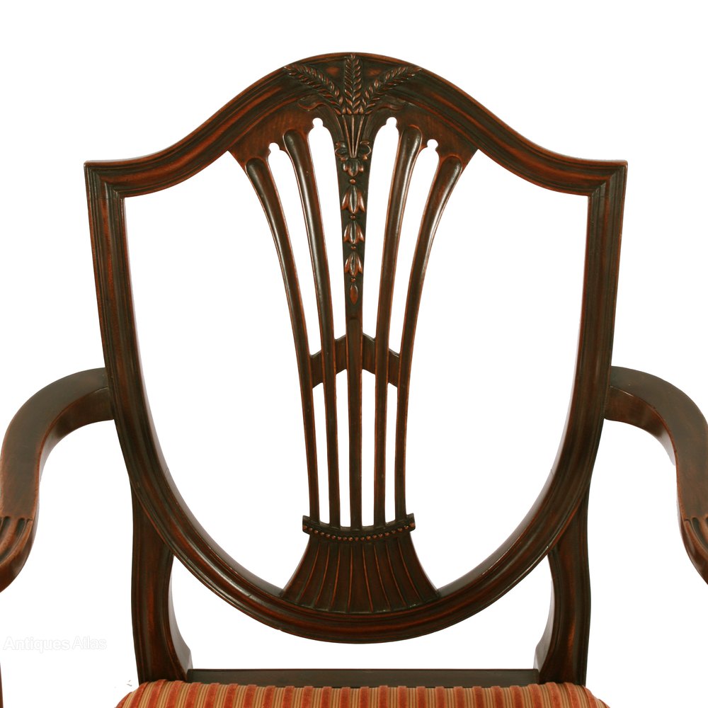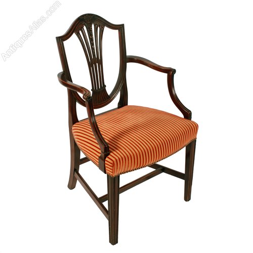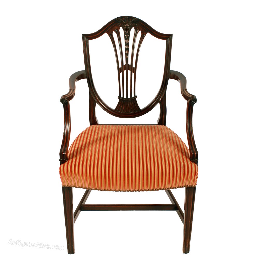 A late 19th to early 20th century Hepplewhite design elbow or arm chair.
