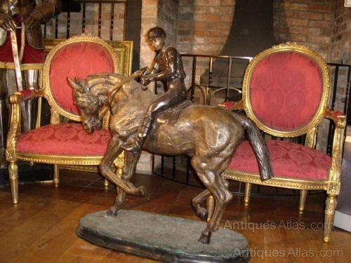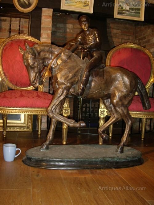 Huge Bronze Horse Jockey Bonheur Pierre Jules Mene