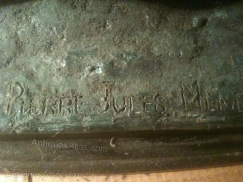 A good quality re-cast 20th century version of Bonheur,after the original work by Pierre Jules Mene,of this large scale sculptured bronze of a Jockey riding his horse in slow gallop.