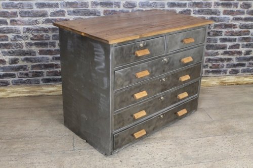 These original industrial metal drawers would be an ideal feature for any kitchen, living room, hallway or urban warehouse interior.