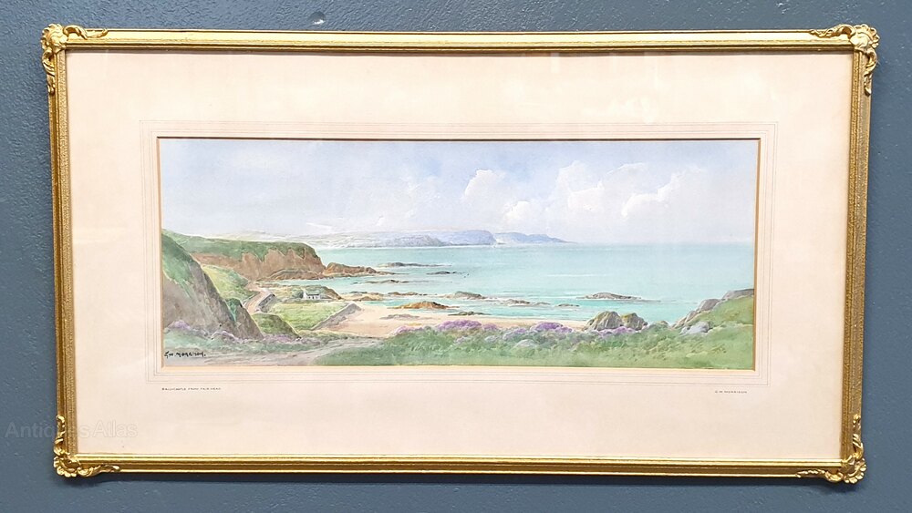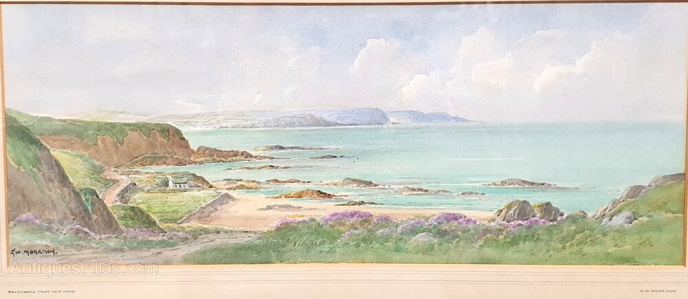 G W Morrison of Ballycastle from Fair Head. The painting is in its original frame.