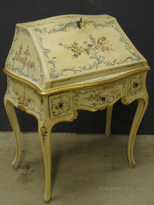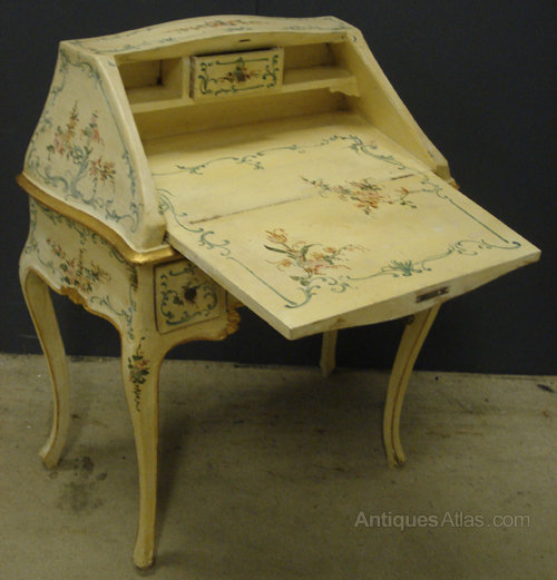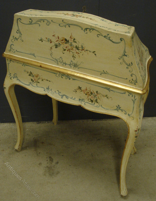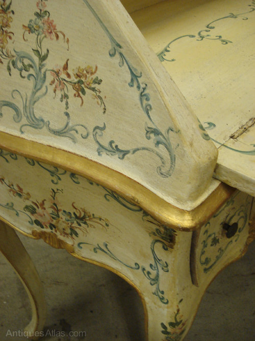 Ref 5025 - Old Italian painted bureau. Original finish with painted decoration. Working locks. Circa 1950.