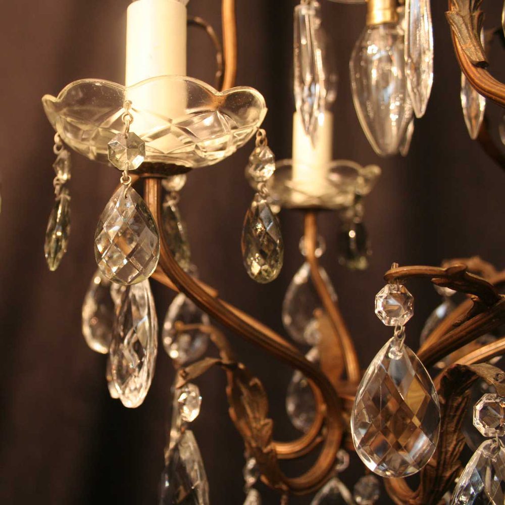 French Gilded Bronze & Crystal Antique Chandelier