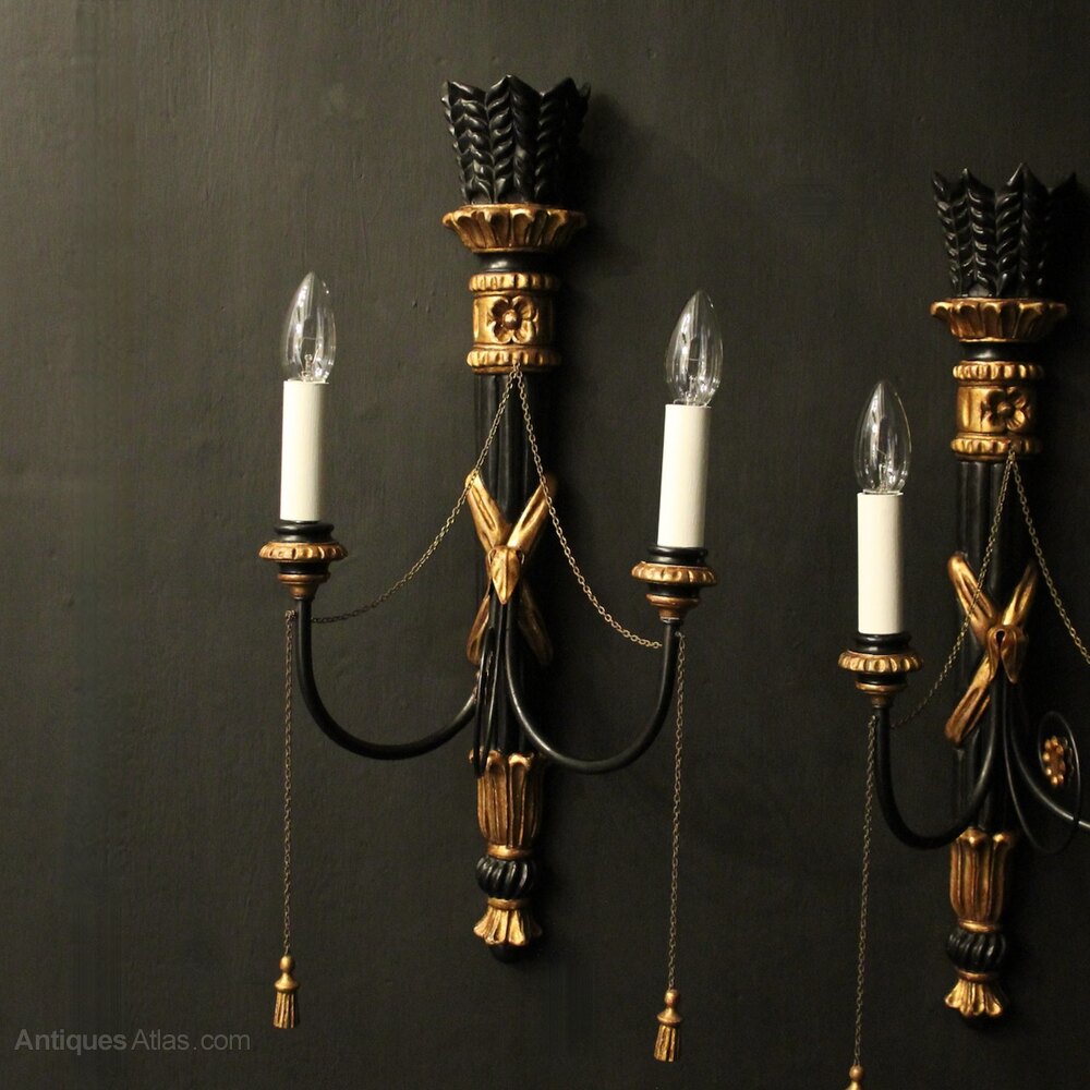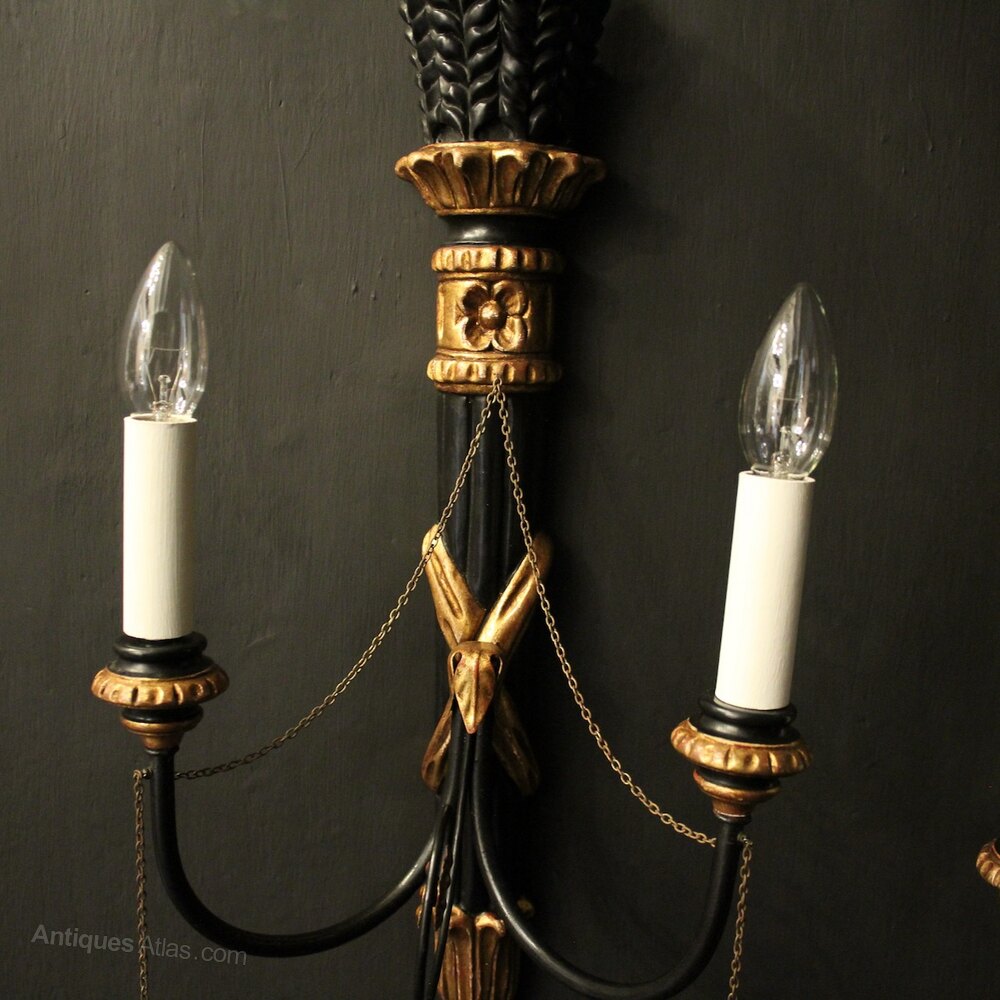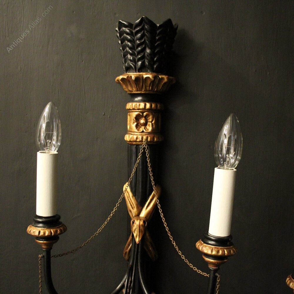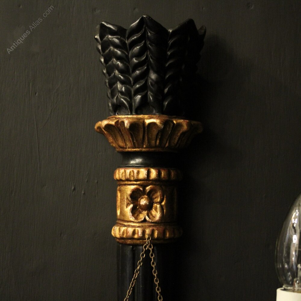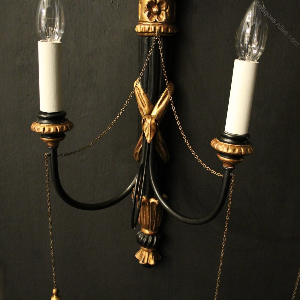 Italian Pair Of Ebonised & Giltwood Wall Lights