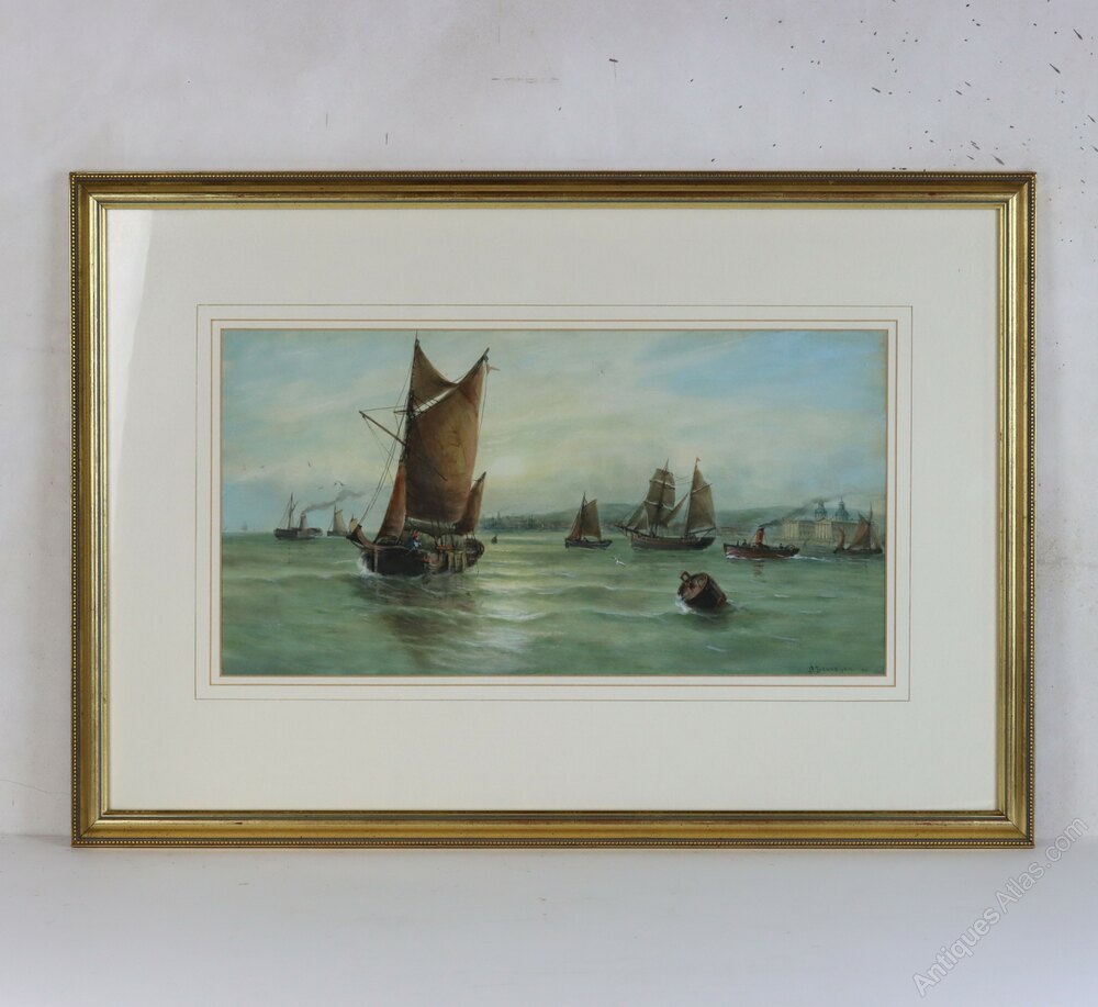 An interesting 19th century watercolour of shipping off Liverpool Docks by John Francis Branegan (1843-1909) in good antique condition and attractively presented in a gilt wood frame. Signed bottom left with the date 1882.